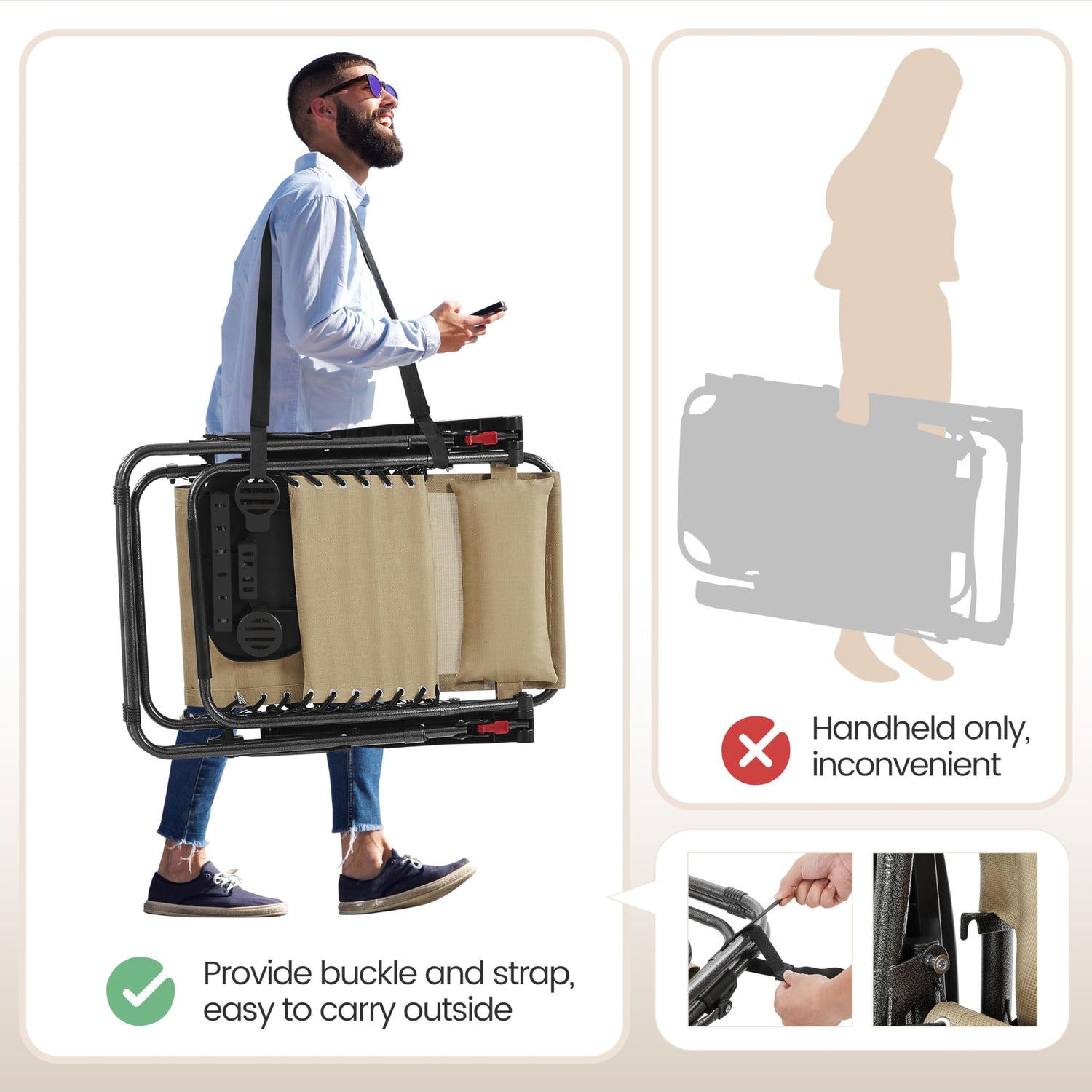 - Solid & Stable Construction: The support frame made of high-hardness and lightweight painted steel is designed in a triangle structure when this chair is unfolded in backrest-upright and zero gravity modes, ensuring your safety and stability. This folded recliner is capable of holding up to 114 kg/ 251 lb