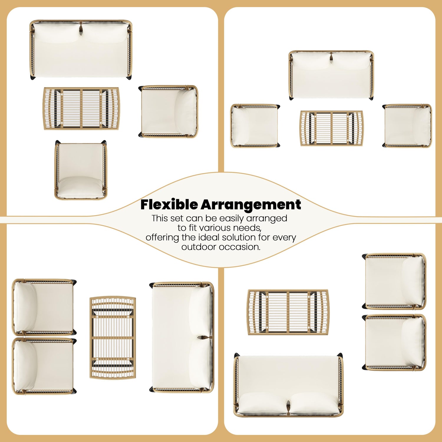 - Flexible Arrangement: The placing of this outdoor furniture set can be easily rearranged to suit your outdoor space and personal preferences, allowing for versatile functionality and adaptability to any setting