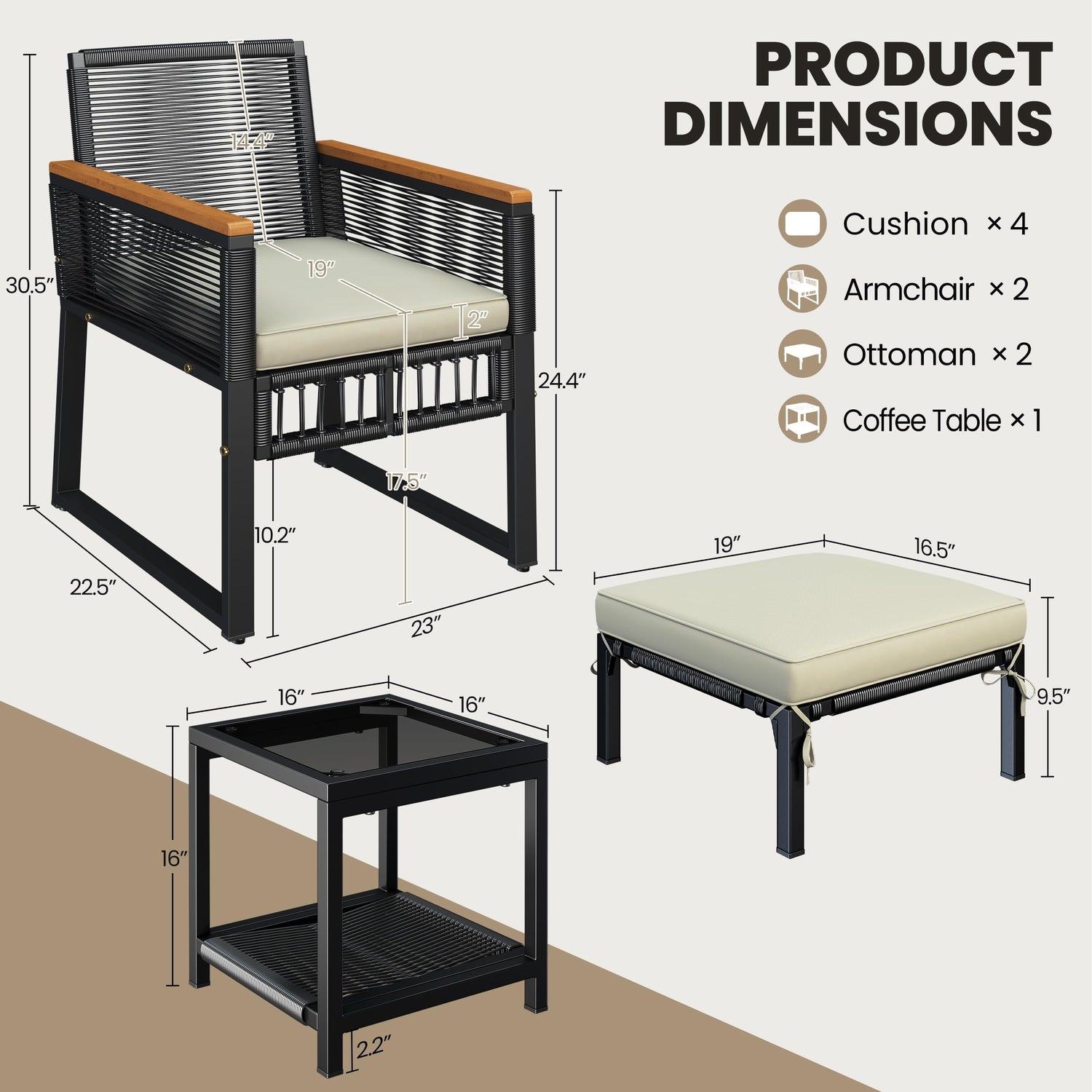- Space-saving Design: The rattan ottomans can be neatly stored under the chairs when not in use, saving valuable space on your patio, deck, or lawn while keeping your outdoor area tidy