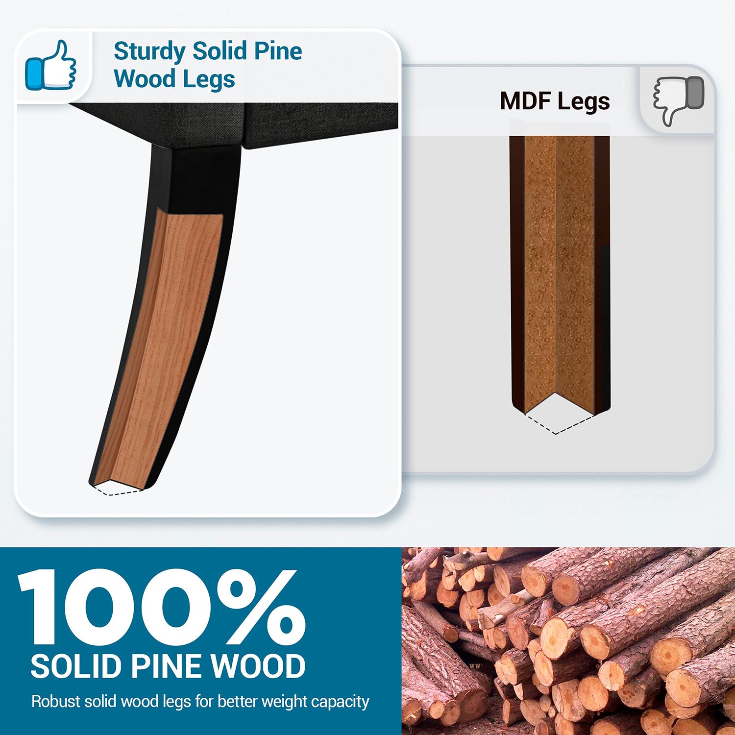 - Sturdy & Stable: Constructed with sturdy composition boards and P2 MDF board, supported by solid pinewood legs, this storage bench can hold up to 300kg/661lb in total. Slanted pinewood legs make this fabric tufted storage bench firm and stable to use.