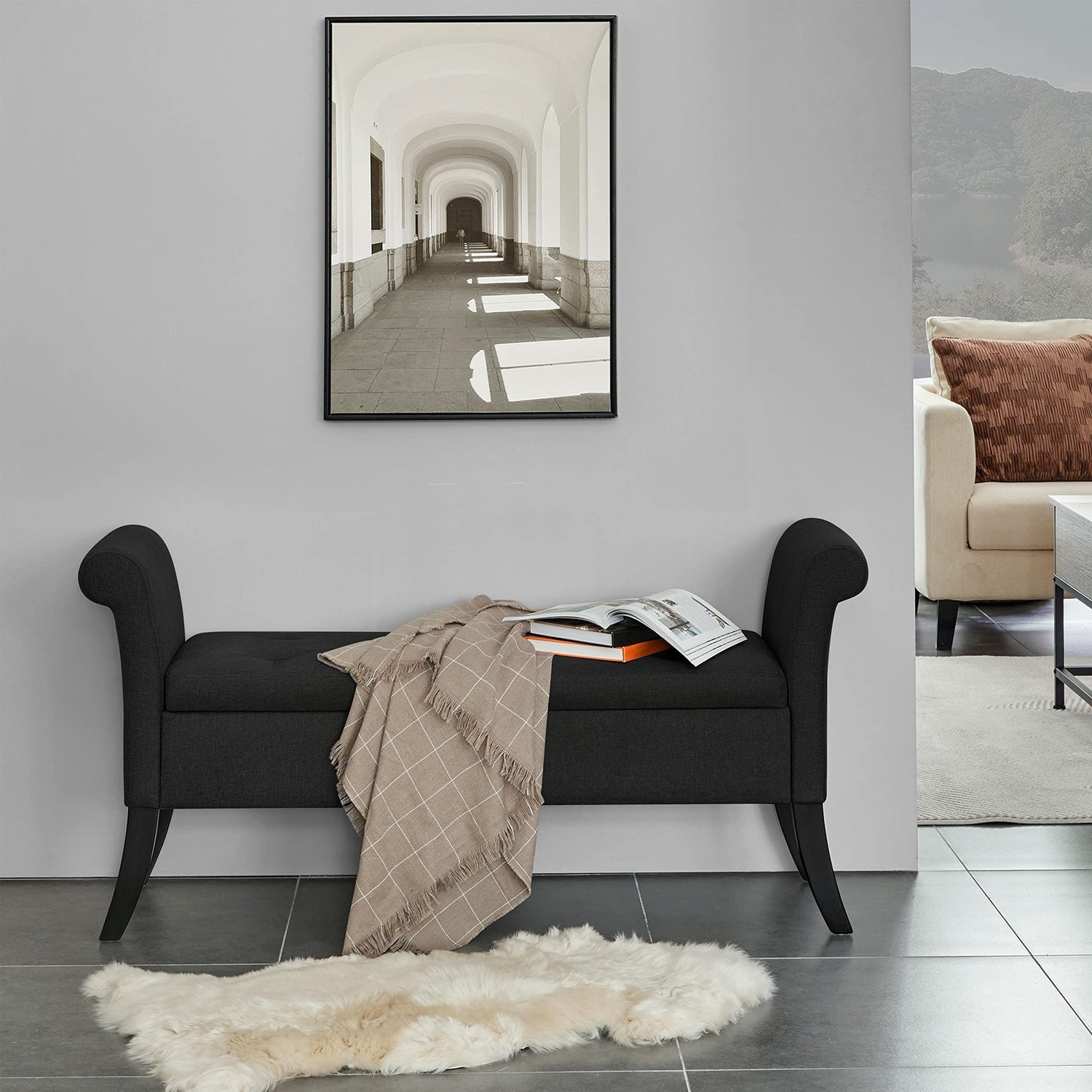 Yaheetech 52in Ottoman Bench Folding Storage Ottoman Bench Tufted Fabric Entryway Bench with Arms Footstool with Large Storage Foot Rest Seat Rolled Arms Cushioned Ottoman Black