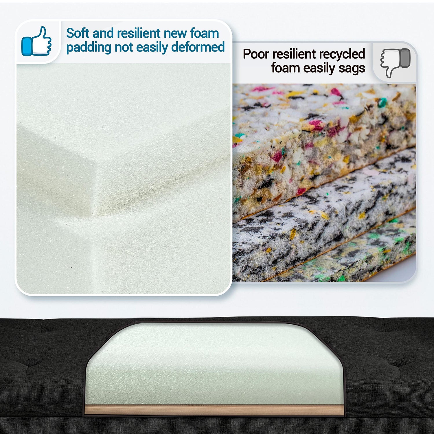 - Soft Touch: Padded with thick high-density foam and covered by a breathable skin-friendly fabric, this ottoman storage bench is endowed with a soft but firm texture, making it cozy to sit on while uneasy to deform.