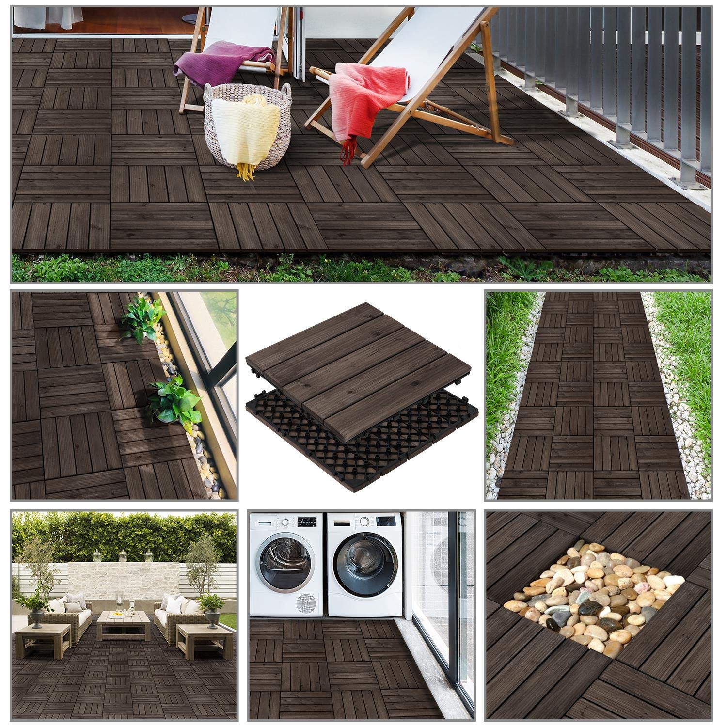 Yaheetech 55pcs Patio Deck Tiles 12 x 12in Interlocking Wood Composite Deck Wooden Flooring Deck Tiles Fir Wood Indoor&Outdoor, Black