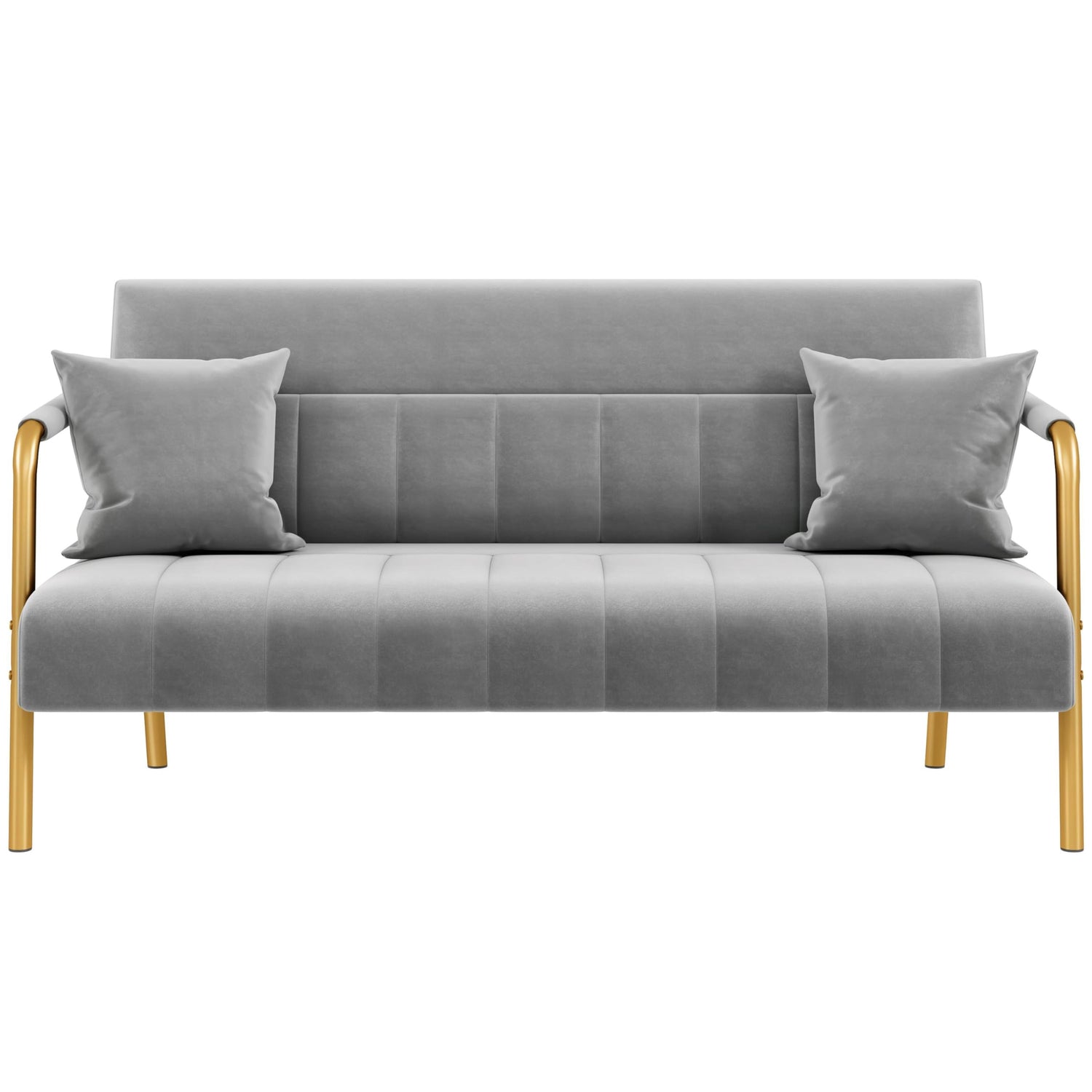 Yaheetech 56.5" W Modern Loveseat 2 Seater Sofa Luxurious Velvet Fabric Couch with Gold-Tone Metal Arms and Legs for Living Room, Home Office, Studio Light Gray