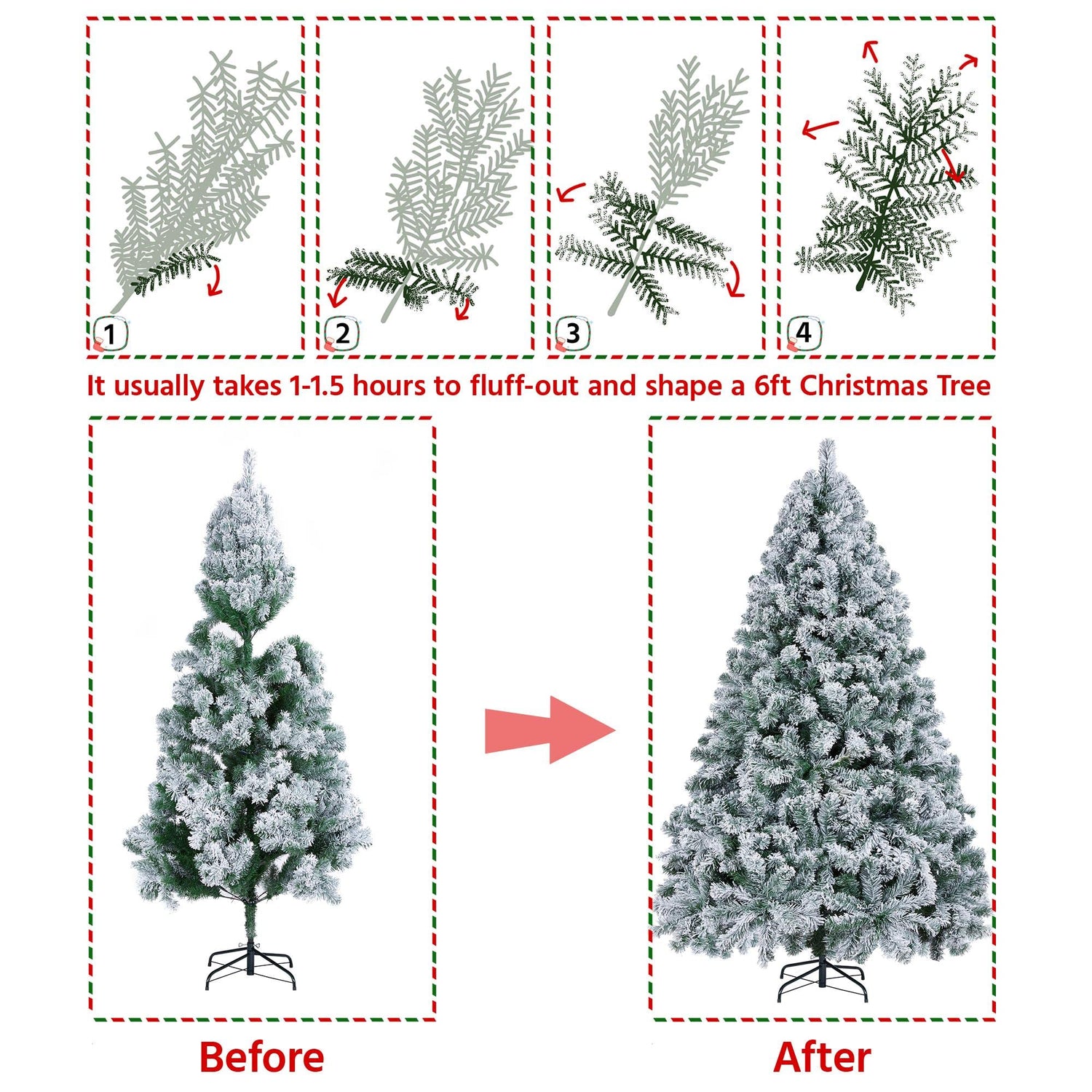 - Snowy Look: The Christmas tree features lush green branches covered in white flocking, creating a stunning snowy white and green appearance that adds a magical winter atmosphere to your holiday decor