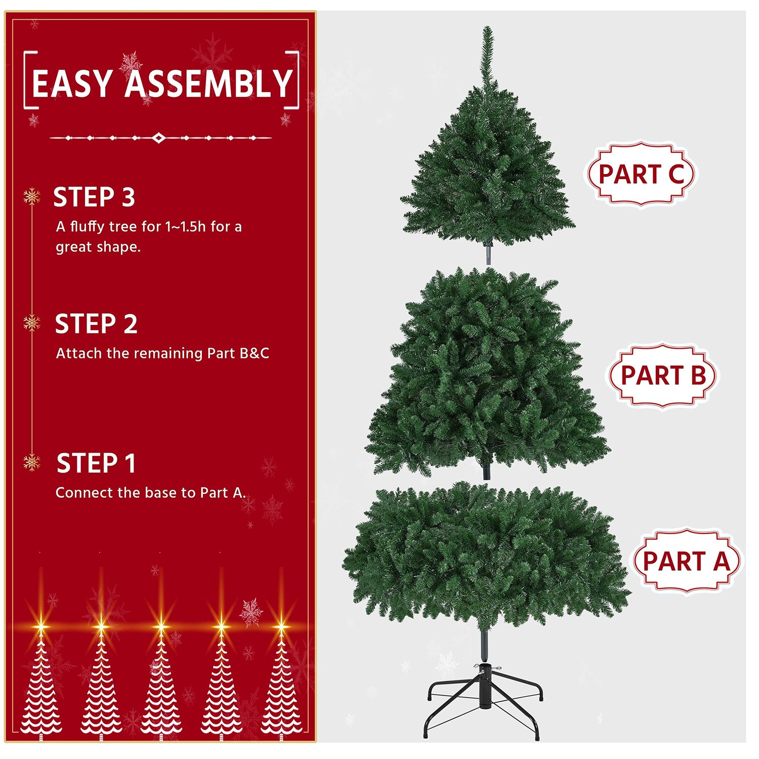 - Easy to Set Up:Our tree is made based on a hinged system, it is easy to assemble with a foldable stand and three other sections of the tree body. You could set up this tree by simply inserting a tree part on another. The stand can also be effortlessly folded out and connected to the tree body with screws. It is suggested to wear gloves while setting up and fluffing out, just like real spruce, the “needles” can be a bit scratchy