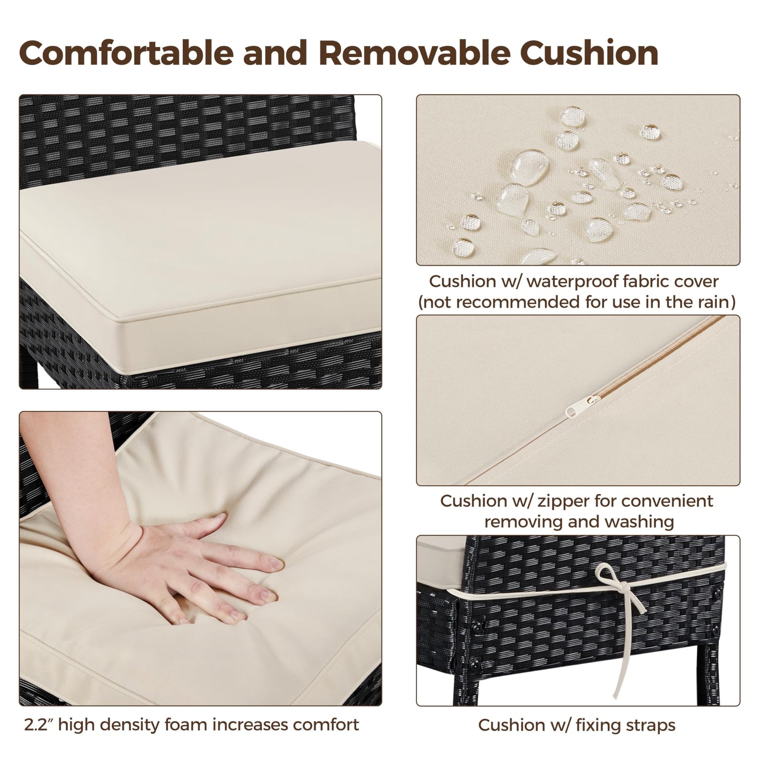 - Height-adjustable Footpads: Equipped with adjustable footpads, this patio table set can be easily leveled on uneven ground, offering better stability and adaptability to different outdoor surfaces