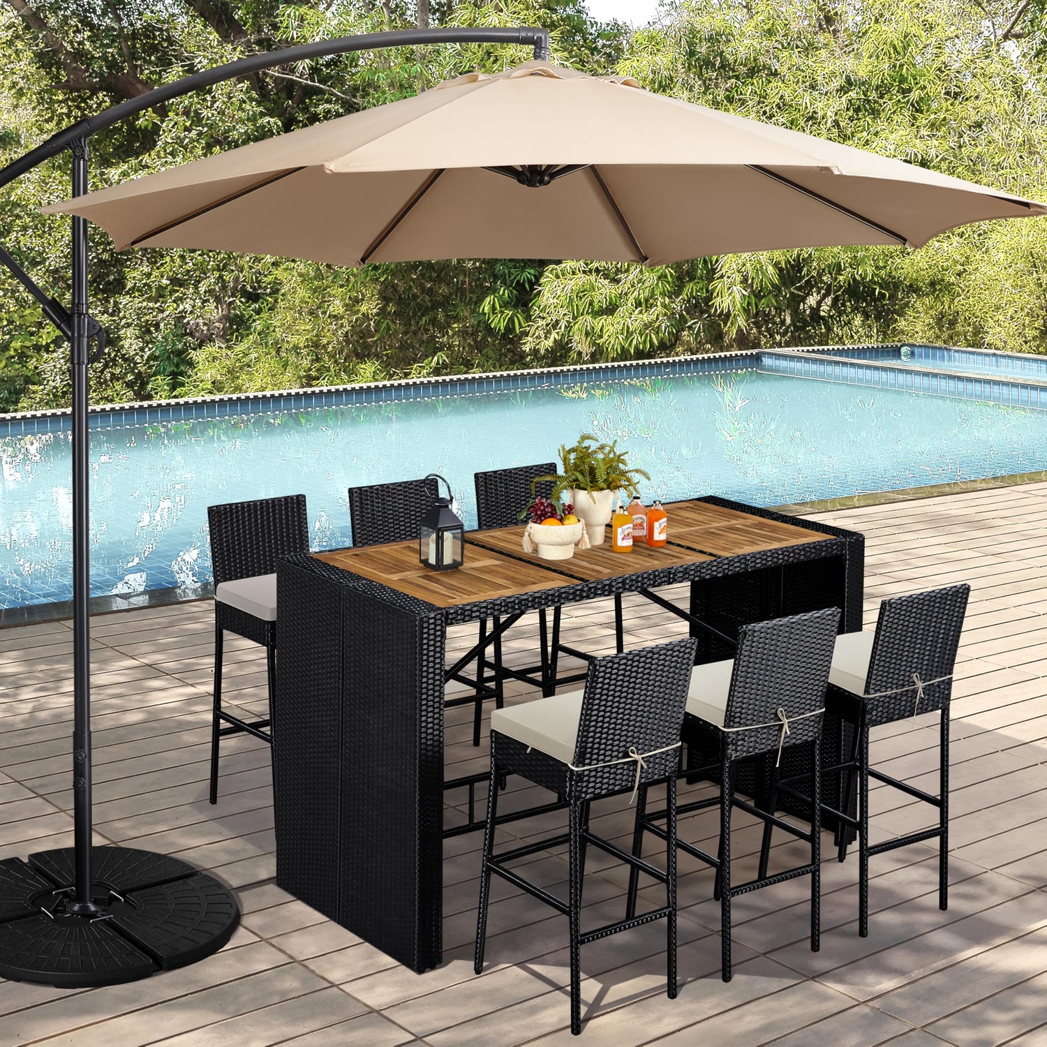 - Versatile & Practical: With a modern and natural design, this outdoor bar set is ideal for both entertaining and dining. It can adapt to a variety of outdoor settings, including patios, gardens, and balconies