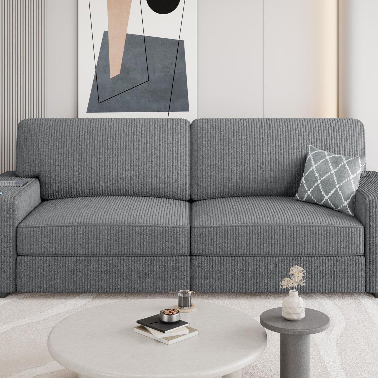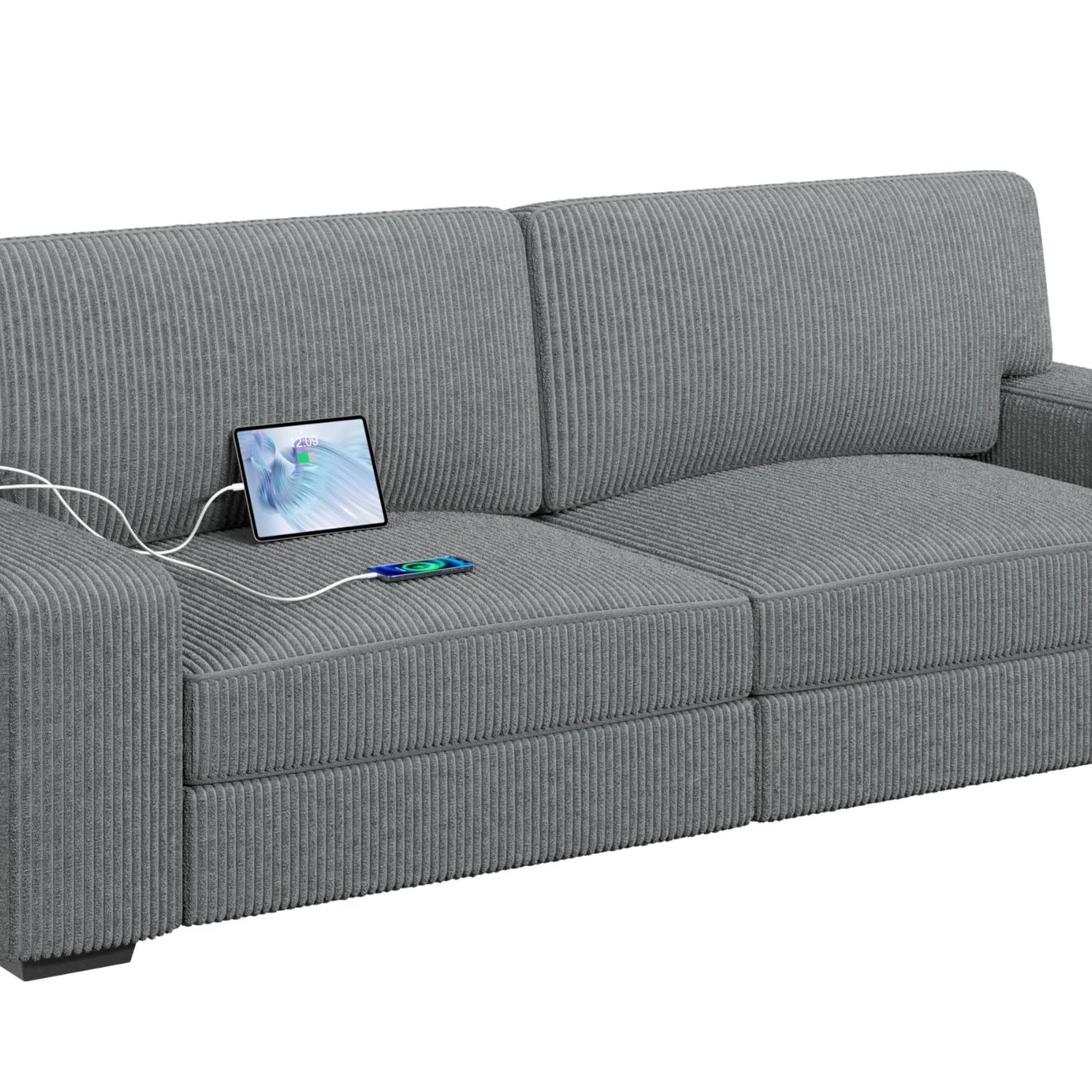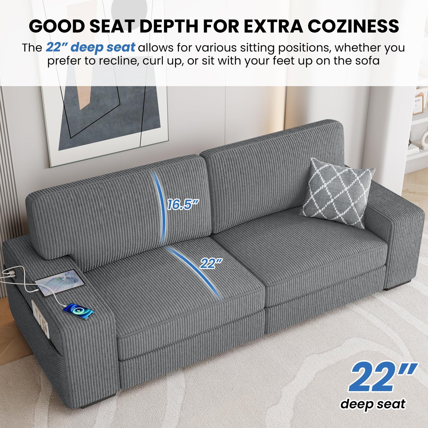 Yaheetech 83.5" W Modern Sofa Couch Corduroy Fabric Sofa with USB Charging Ports & Side Storage Pockets for Living Room Apartment, Dark Gray
