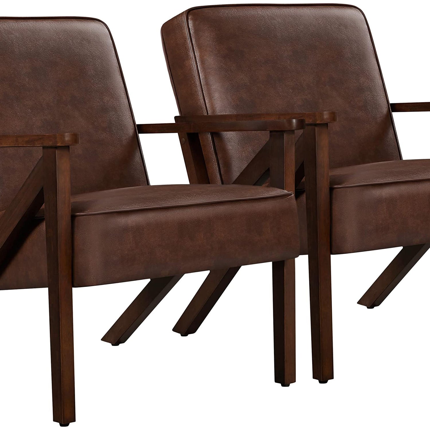 Yaheetech Accent Chair, Armchair with Strong Wood Frame, PU Leather Modern Retro Lounge Chair for Living Room/Lounge/Office/Reception Area, 2 Pieces, Dark Brown