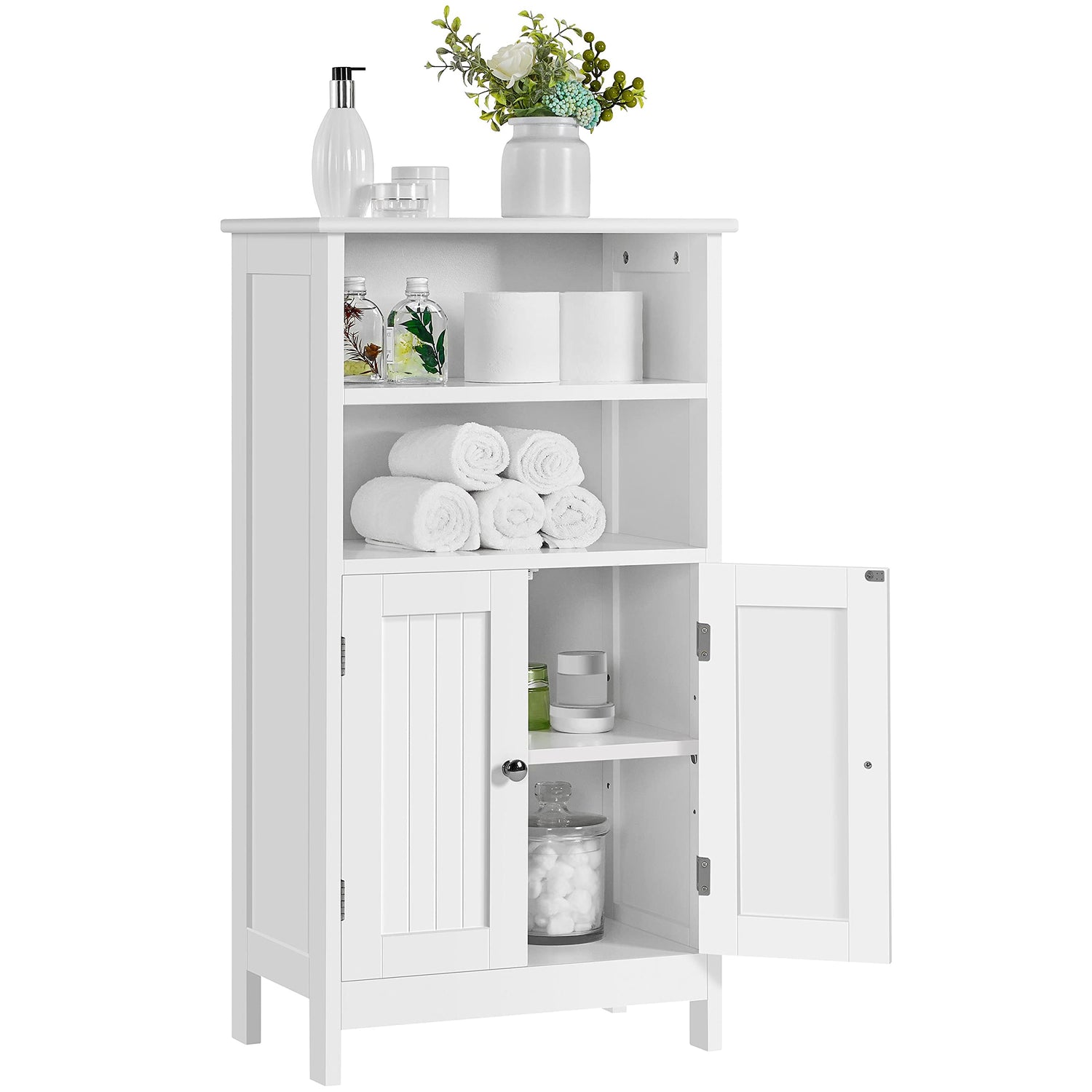 Yaheetech Bathroom Floor Cabinet, Free Standing Cabinet with Double Door and Adjustable Shelf, Side Tall Storage Organizer for Living Room/Kitchen/Hallway/Home Office, White