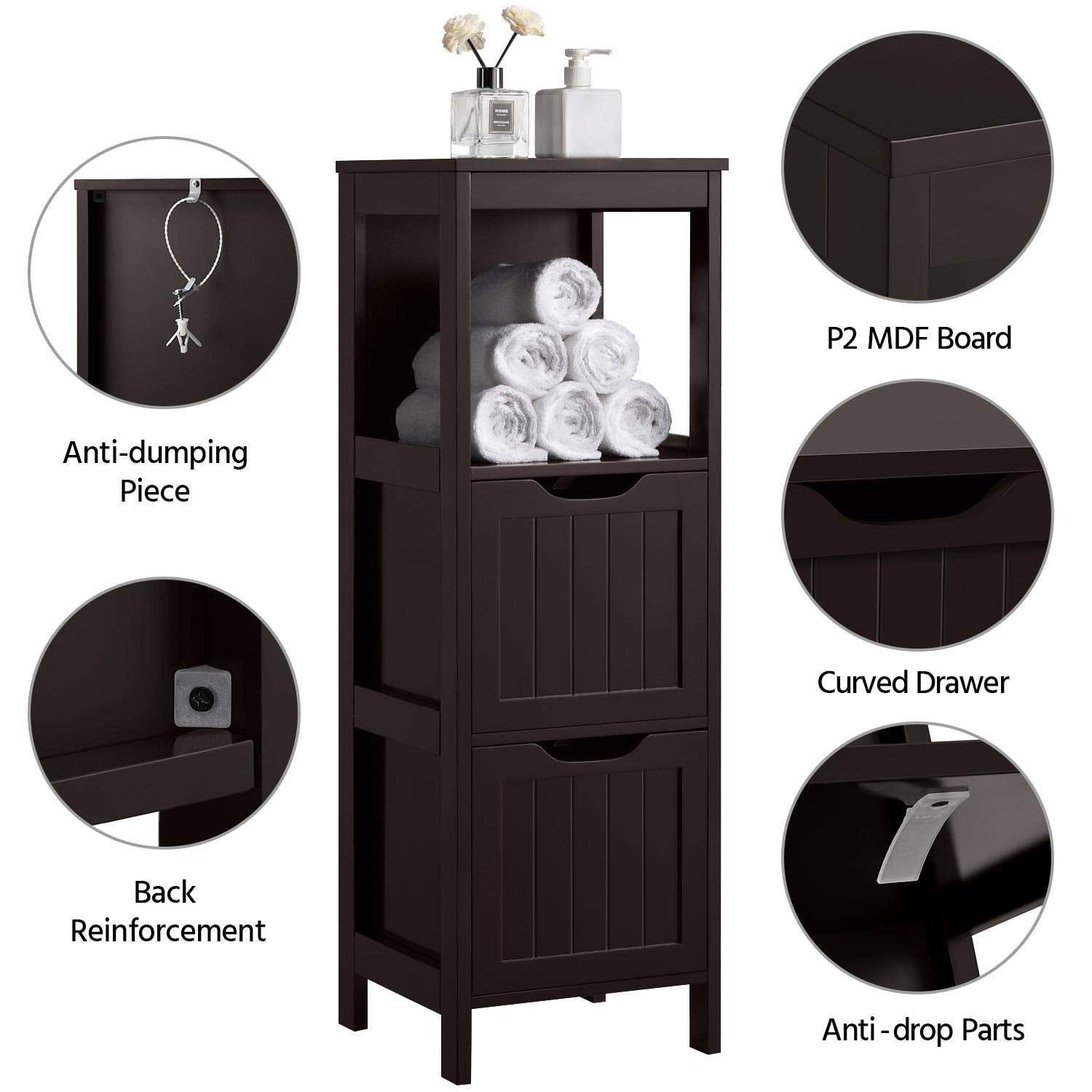 Yaheetech Espresso Wooden Multi-Functional Bathroom Storage Cabinet with Drawers and Adjustable Shelves