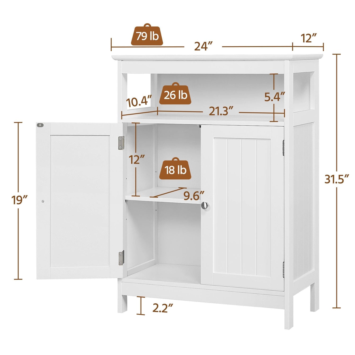 - Space-Saving & Versatile Use: Measuring 24″ L × 12″ W × 31.5″ H, this compact two-door wooden cabinet offers a spacious countertop, open compartment, and enclosed storage with an adjustable shelf at three heights for organized, efficient space utilization