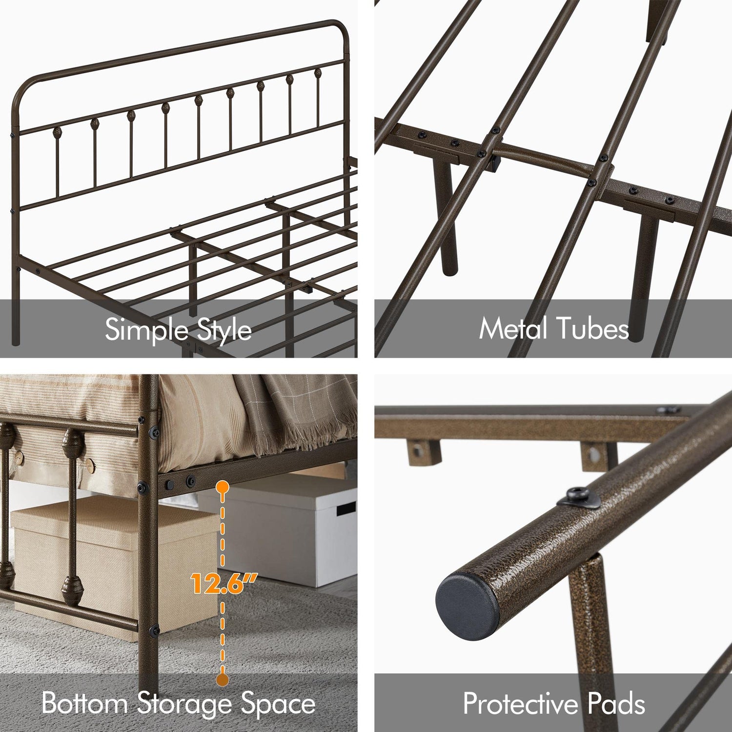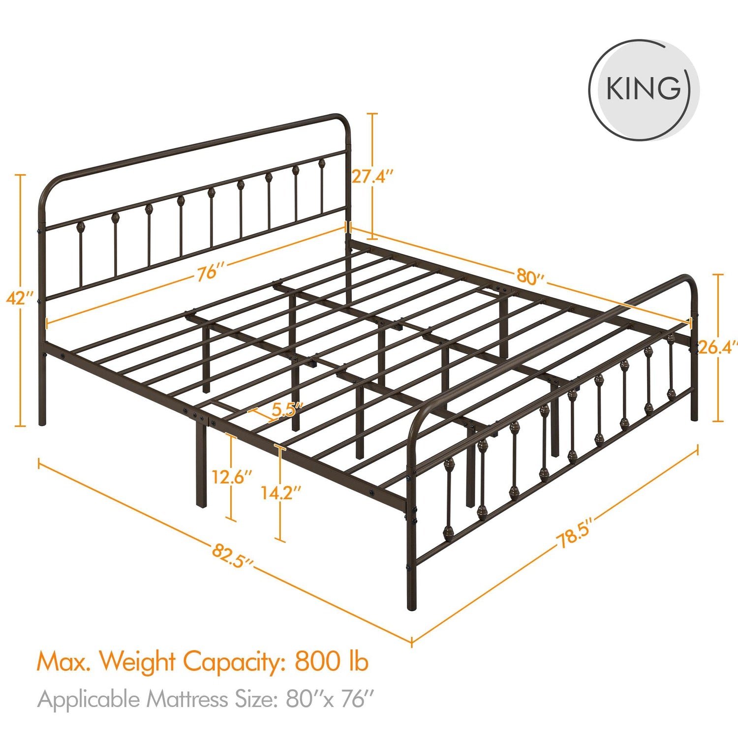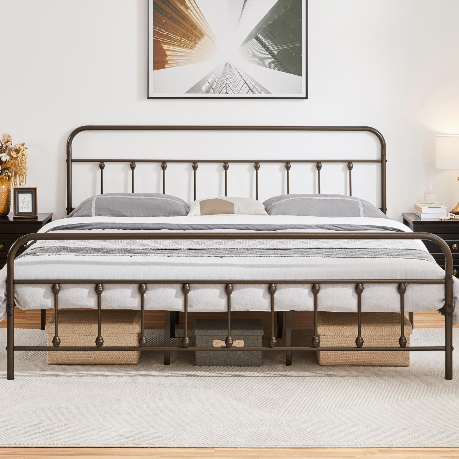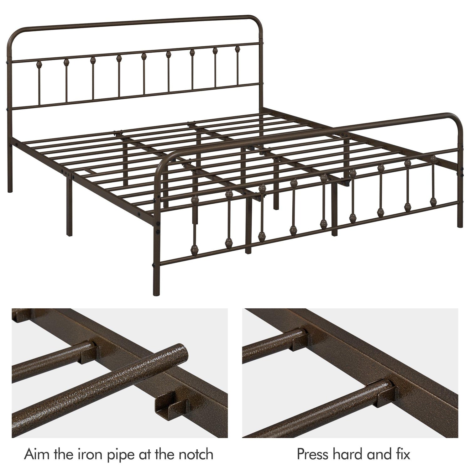 Yaheetech Classic Metal Platform Bed Frame Mattress Foundation with Victorian Style Iron-Art Headboard/Footboard/Under Bed Storage/No Box Spring Needed/King Size Bronze