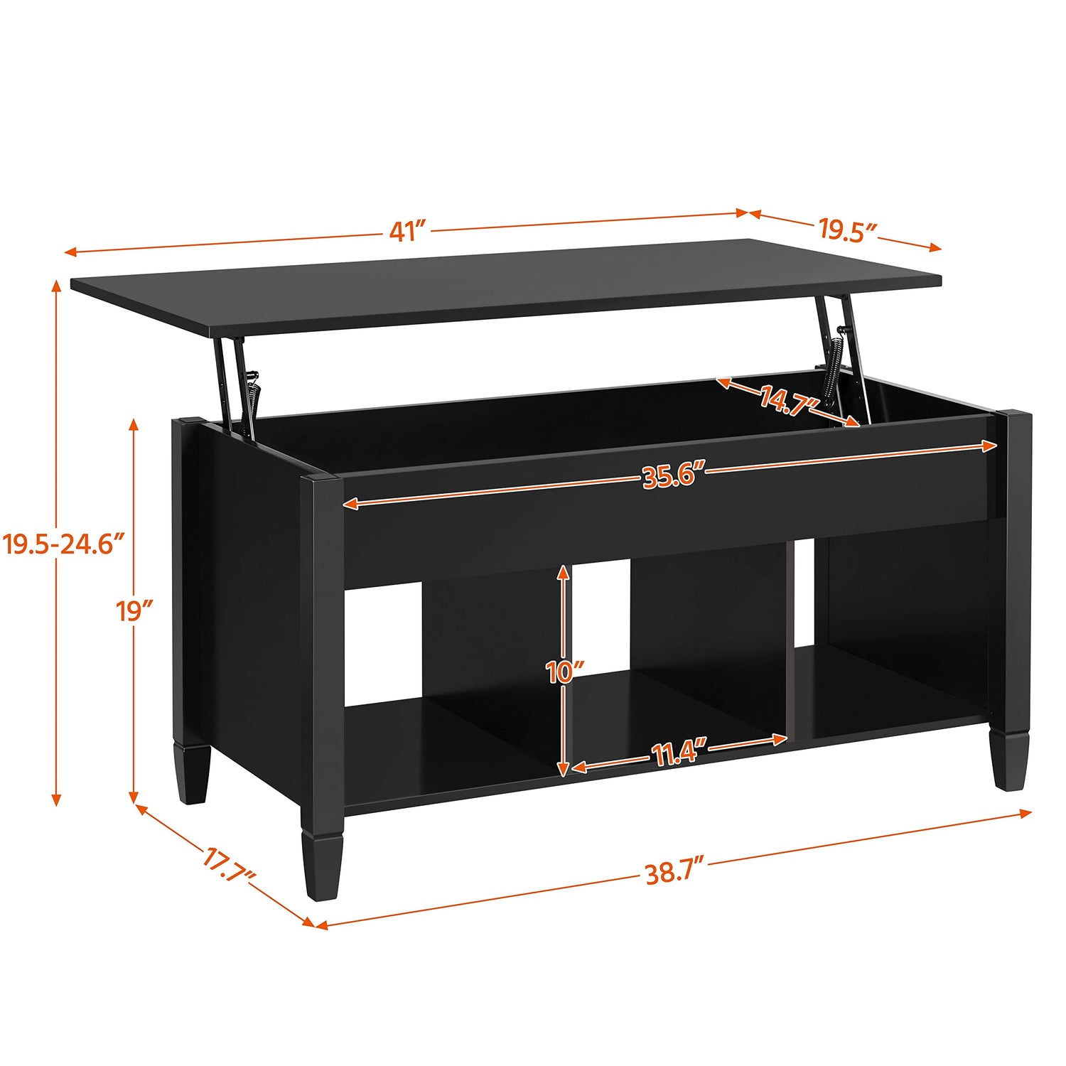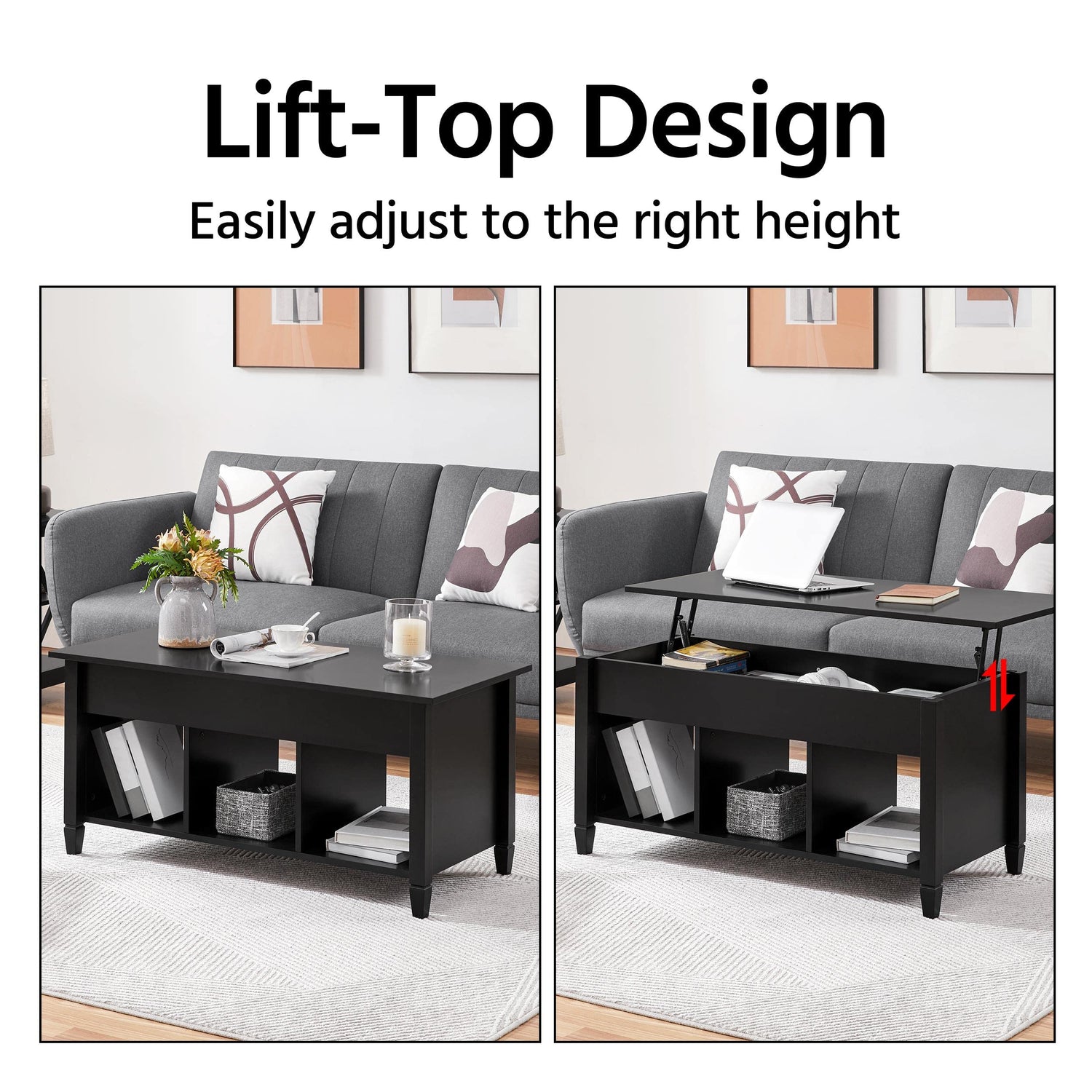 Yaheetech Coffee Table, Lift Top Coffee Table w/Hidden Storage Compartment & Lower 3 Cube Open Shelves, Lift Tabletop Coffee Table for Living Room/Reception Room/Office, Black