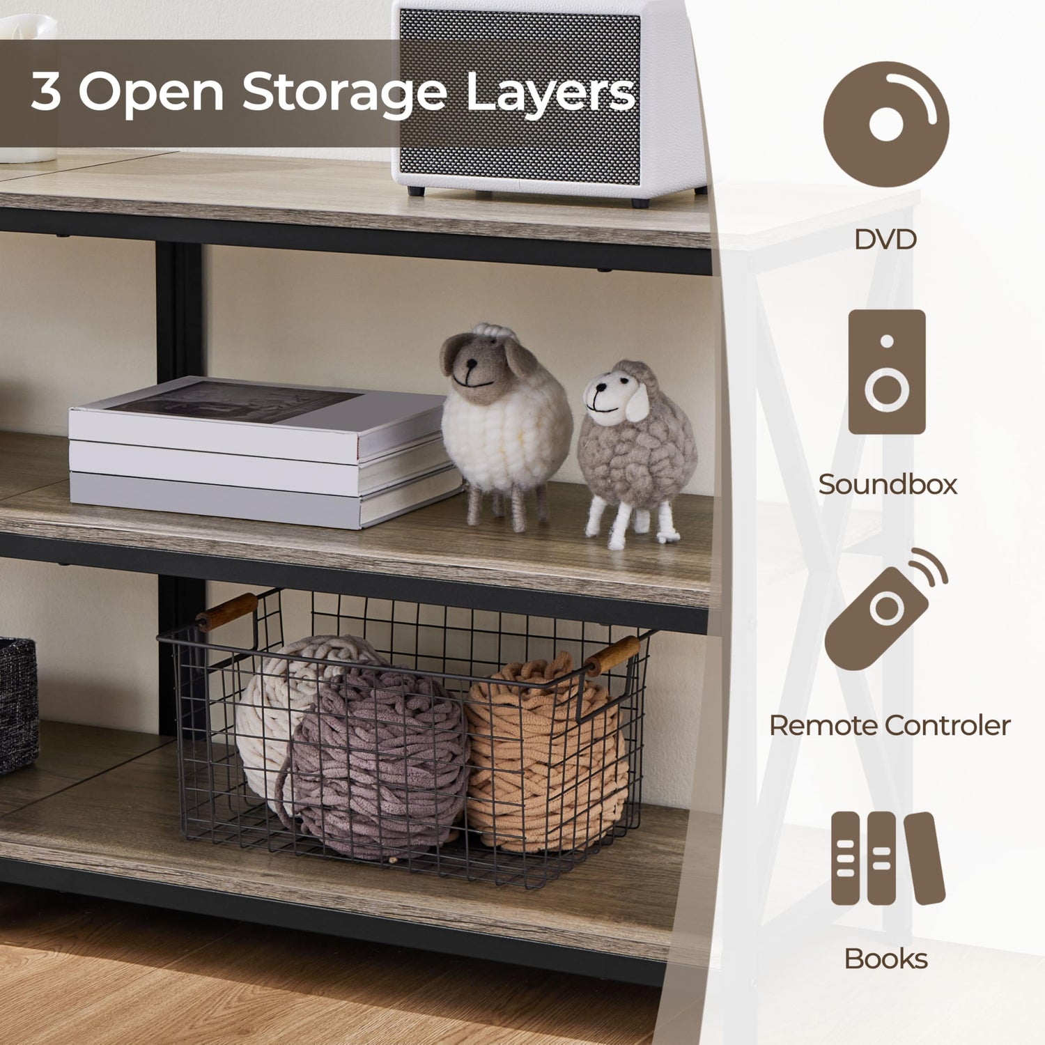 - Industry Presence: Embracing minimalist lines, wood and iron elements, and classic natural and black colors, this open storage sofa table breathes a soothing industrial vibe, which can blend with any lodge or modern farmhouse aesthetic