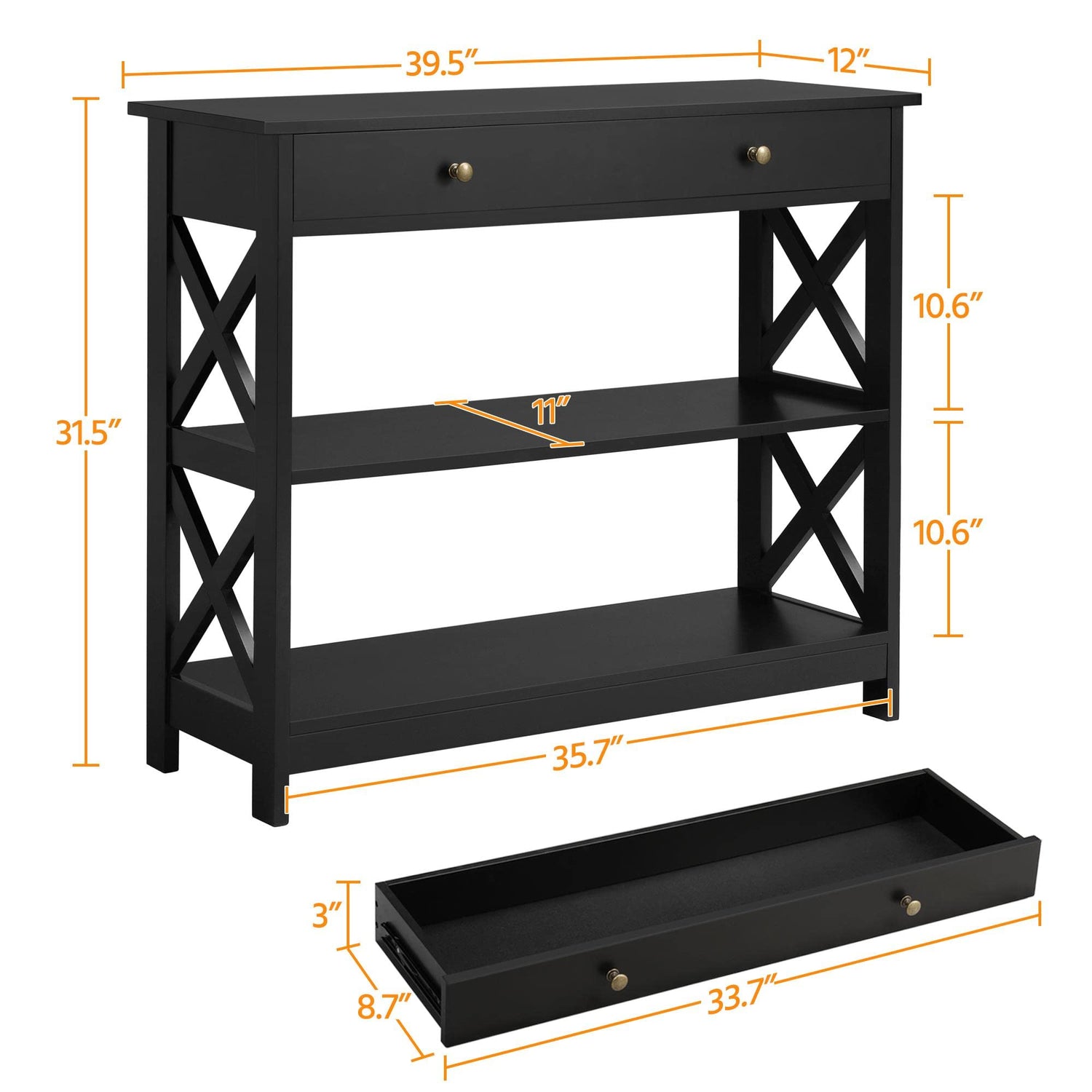 Yaheetech Console Table with Drawer, 39.5 Inch Narrow Sofa Table with Storage Shelves, 3-Tier Wood Entryway Table for Hallway/Living Room/Foyer, Black