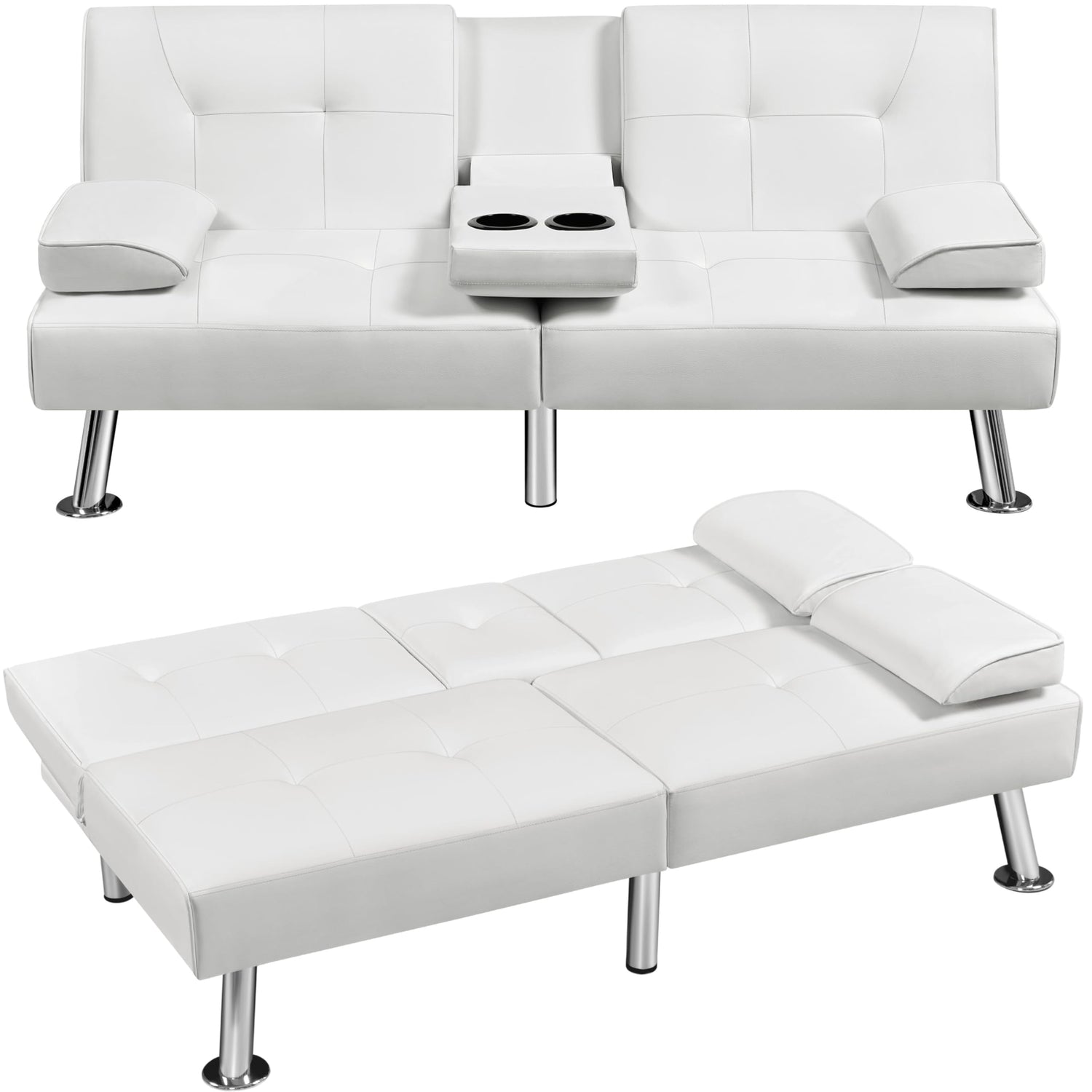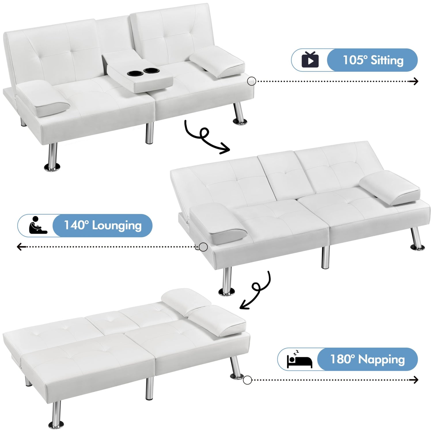 Yaheetech Convertible Sofa Bed Adjustable Couch Sleeper Modern Faux Leather Home Recliner Reversible Loveseat Folding Daybed Guest Bed, Removable Armrests, Cup Holders, 3 Angles, 772lb Capacity, White
