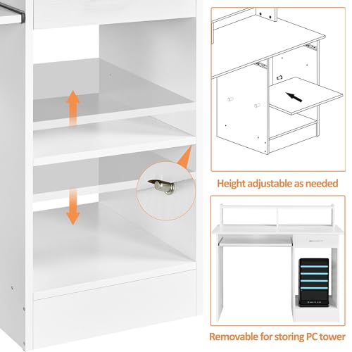 - AMPLE STORAGE SPACE: On the right of this computer desk is a smooth-sliding drawer with a handy pull for stashing workday essentials. Under the drawer is an open cabinet with a height-adjustable shelf, which can be customized for your different storage needs.