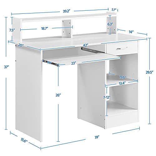- SMALL SPACE FRIENDLY: With a compact overall size of 106cmx50cmx94cm/42”x20”x 37” (LxWxH), this practical computer desk downsizes for space but ups the functionality for home office, bedroom, living room or limited space.