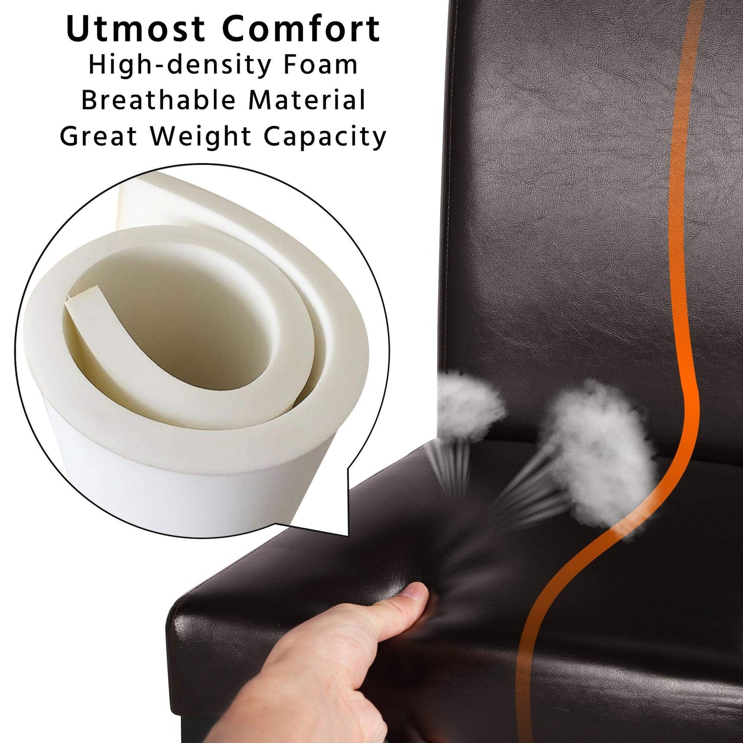 - High Quality: Our dining chairs are made from faux leather, non-woven fabric, composite board, foam, rubberwood. The foam padded seat and high-backed backrest will provide you with much comfort and ease.