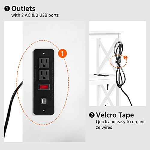 Yaheetech Entryway Table with Storage Shelves, Console Table with Power Outlets and USB Ports, Wood Narrow Sofa Table with X-Shaped Design for Living Room/Hallway/Couch, White