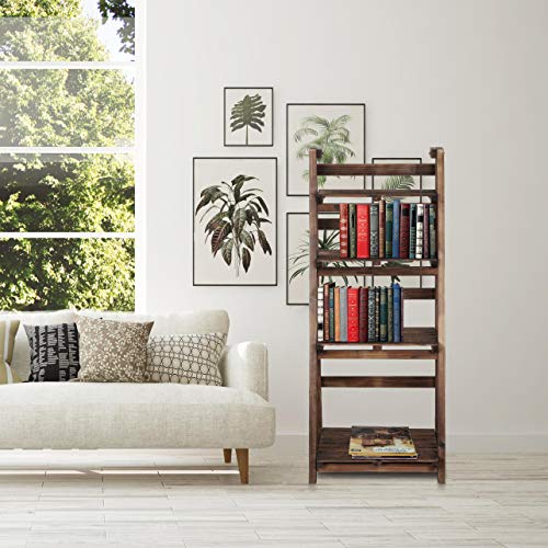 - 【🌼Unique Addition】The carbonization treatment gives this shelf a distressed coloring for a touch of rustic appeal. And the natural irregular wood grains make every plant shelf one of a kind.