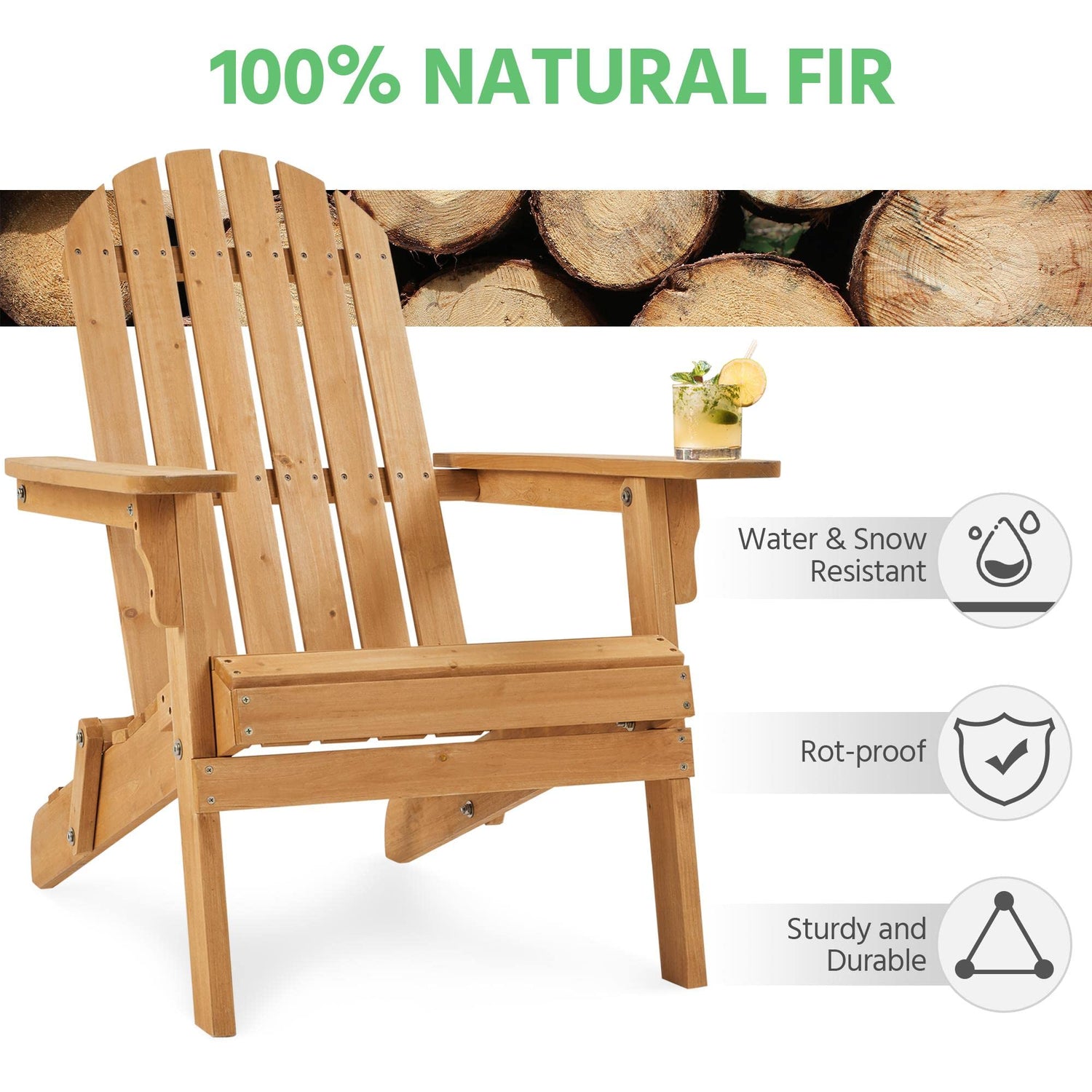 • Natural & Simple Adirondack Chair, Less is more: How to live up to this precious spring? Fit into it! This is what our Adirondack chair is for. Made of solid fir wood, we keep its original natural color; combined with clean lines, it is so natural and fresh that it is born to belong to your garden. The foldable design and time-tested quality make it a practical outdoor essential