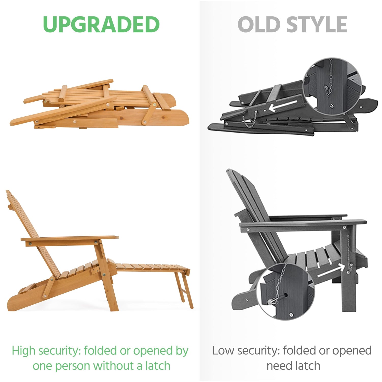 - 【Come Stretch Out In Sunshine】This foldable Adirondack chair made from enhanced water paint-coated fir embraces a backrest, armrests, and retractable leg rest is cozy and textured for you to fully stretch yourself in honey sunshine and fresh air