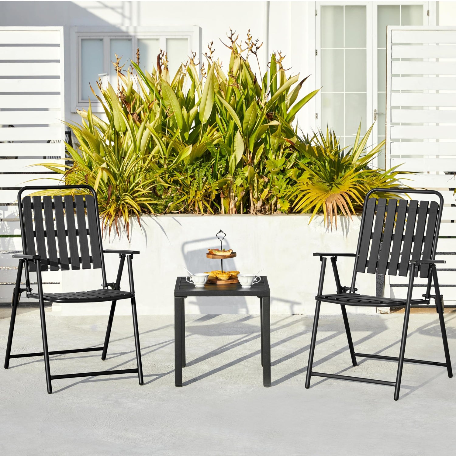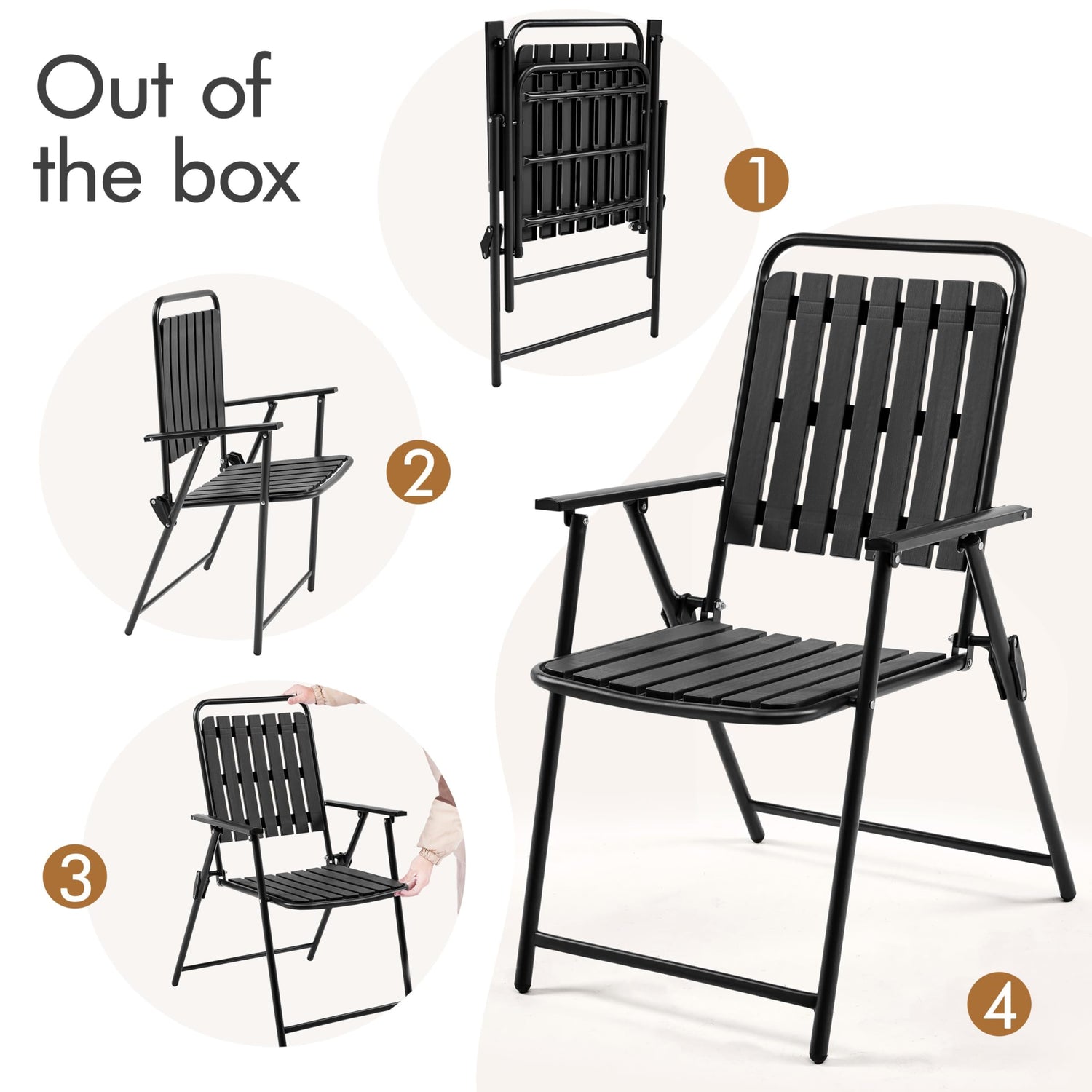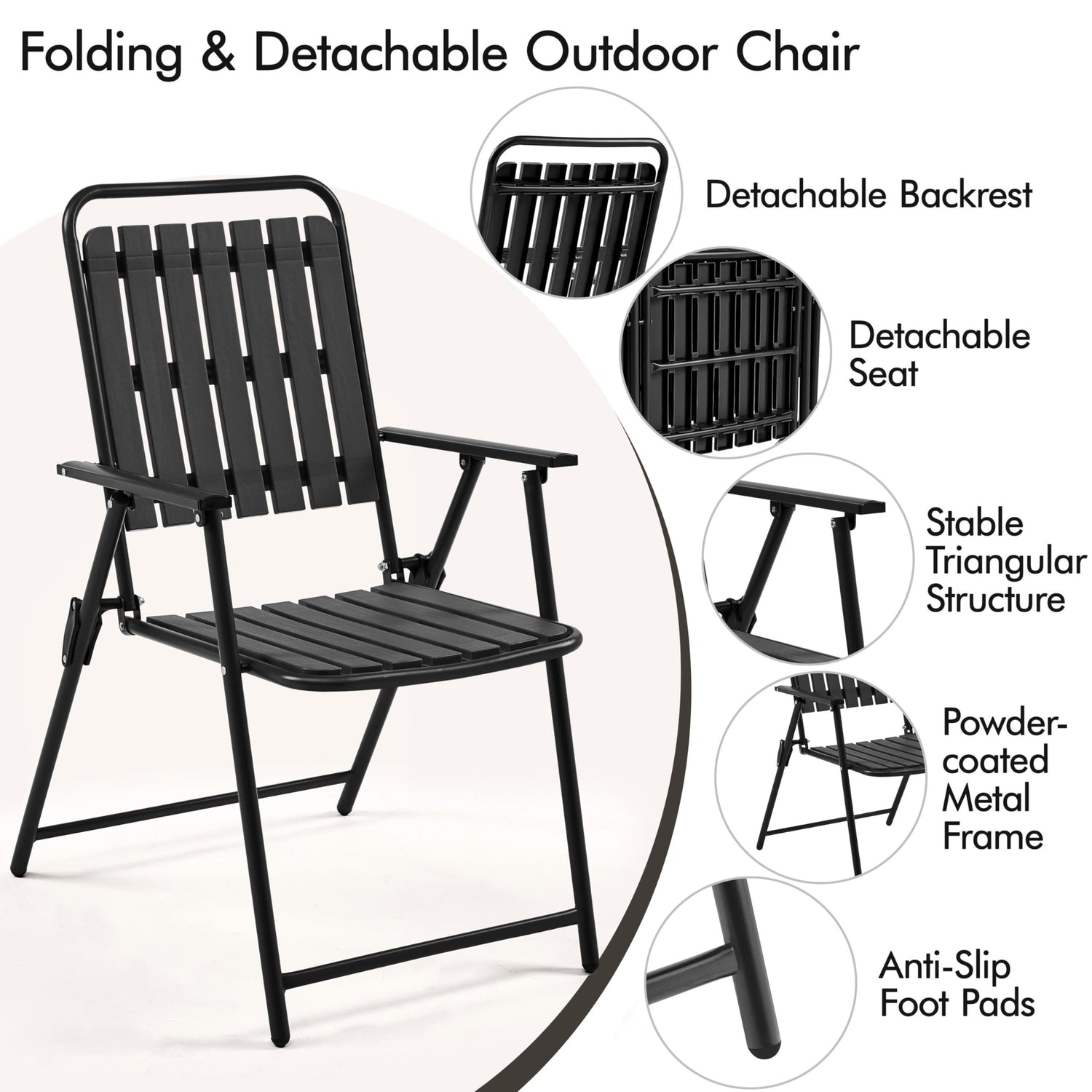 • All-weather Material: Crafted with a PP seat and framed by powder-coated iron support, this outdoor folding chair set offers outstanding resistance to weather, water, wear, and scratches. It’s built to withstand challenging outdoor elements and remains in great condition for years to come