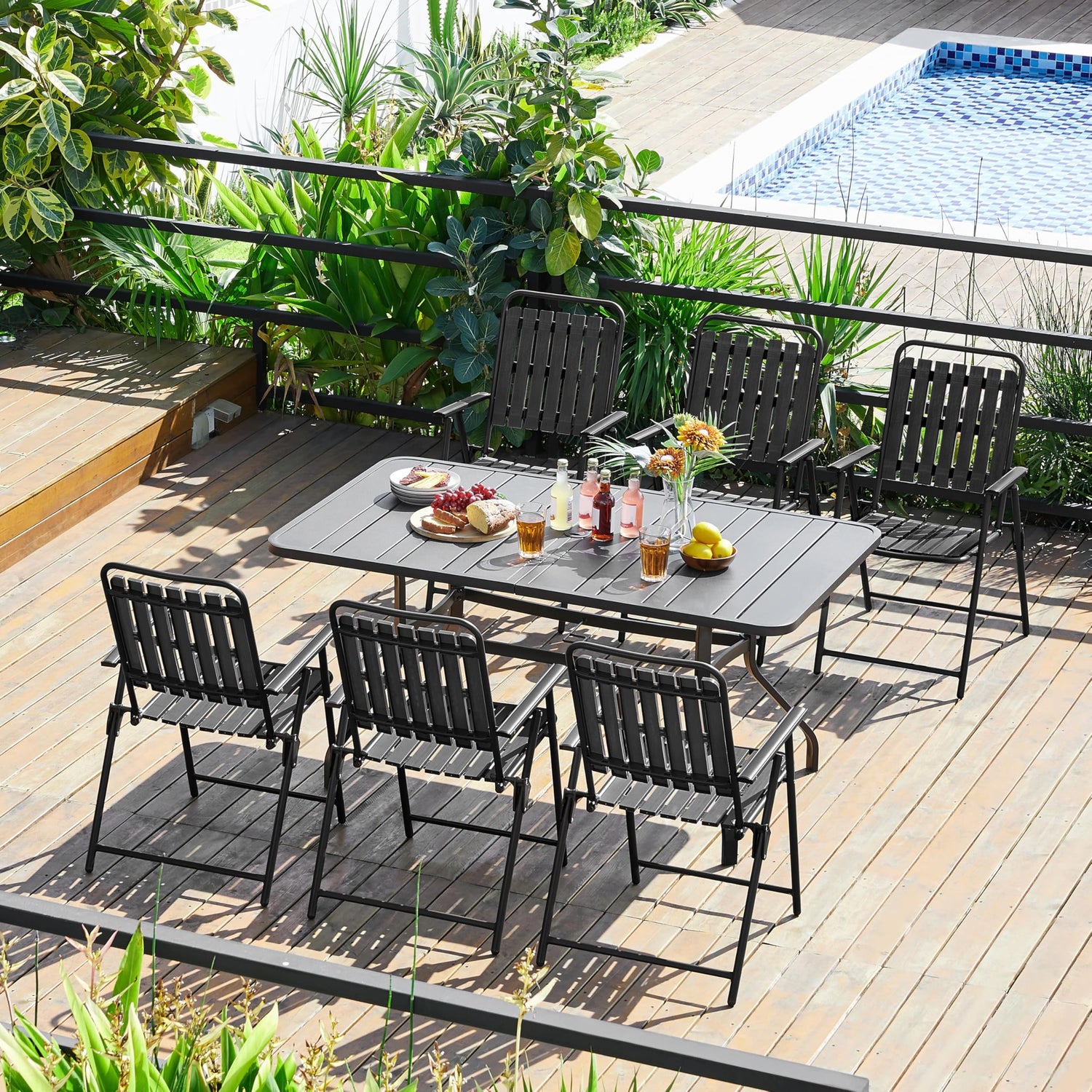 • Out of the Box: This 8-piece patio dining chair set comes fully assembled. Simply unpack the box, unfold the chairs, and they're ready to use—no installation required