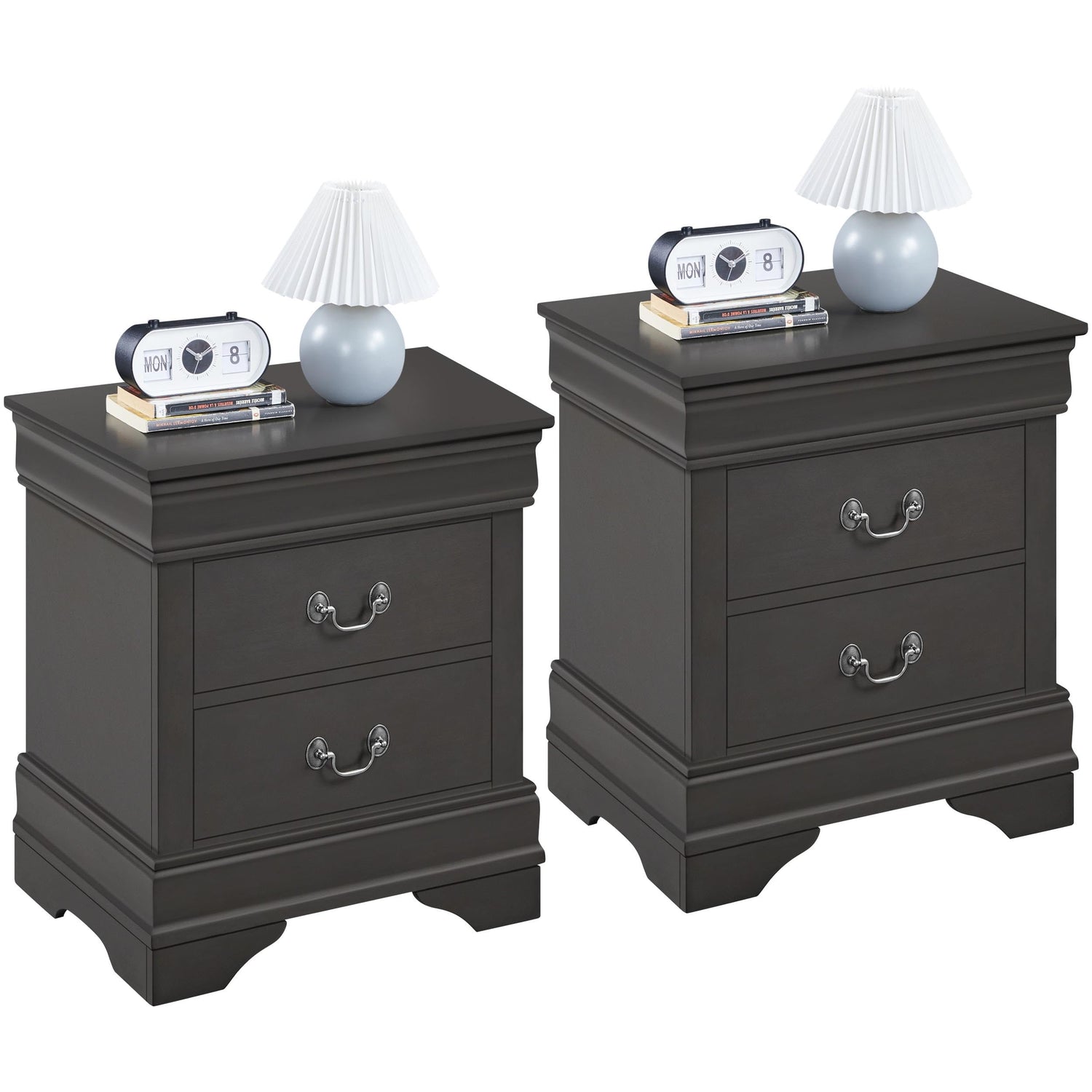Yaheetech Fully-Assembled Nightstands Set of 2, 2-Drawer Nightstands Large Classic Bedside Tables with Storage, Wooden Painted Storage Cabinet for Bedroom, 21.5″L×16″W×24.5″H, Rustic Gray