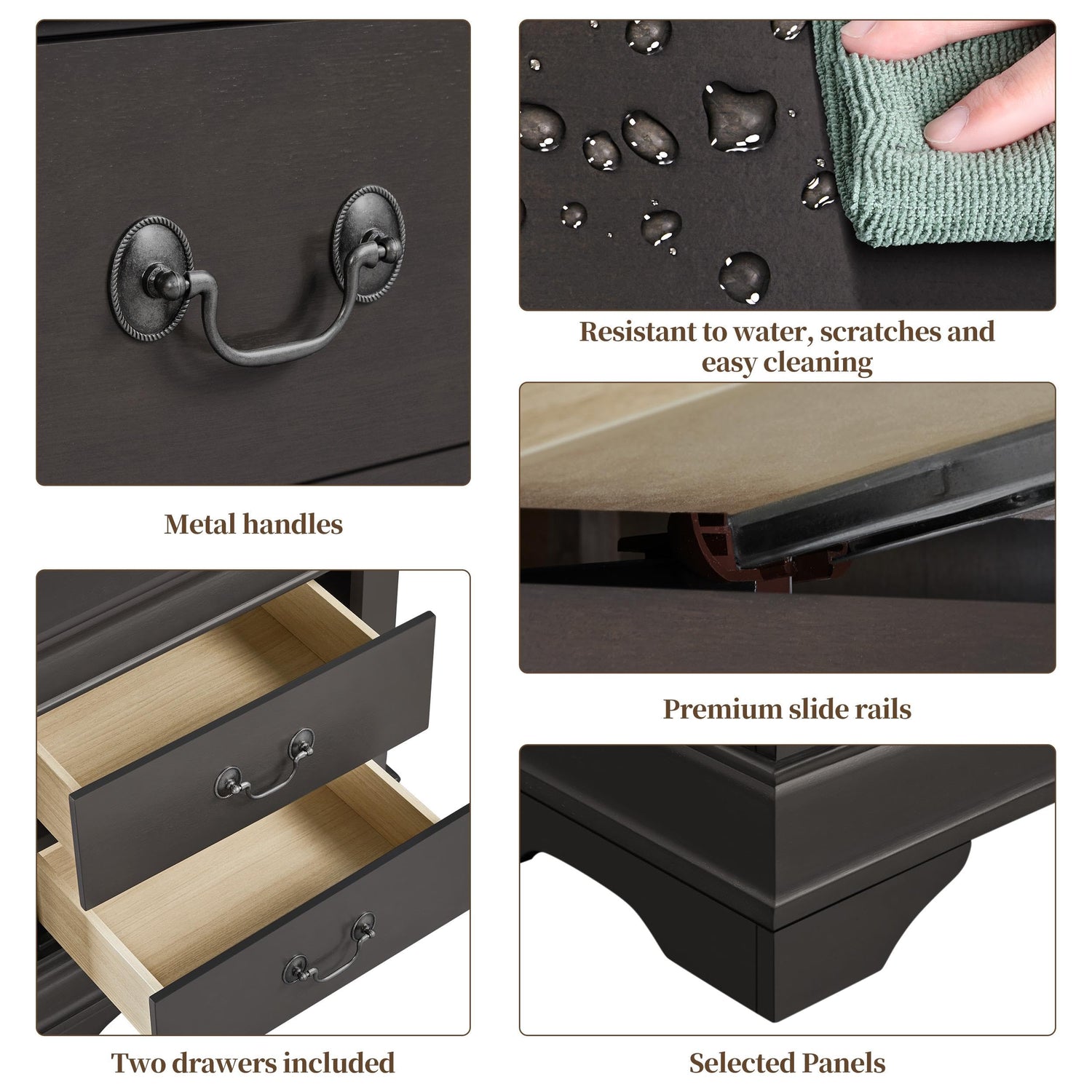 - 【Rubberwood Frame & Support 】The frame and bracket support are made of solid rubberwood with high hardness and durability. The strong frame and support endows this 2-drawer bedside cupboard with a robust structure and weight capacity, holding up to 44 lb on the top, 22 lb on each drawer