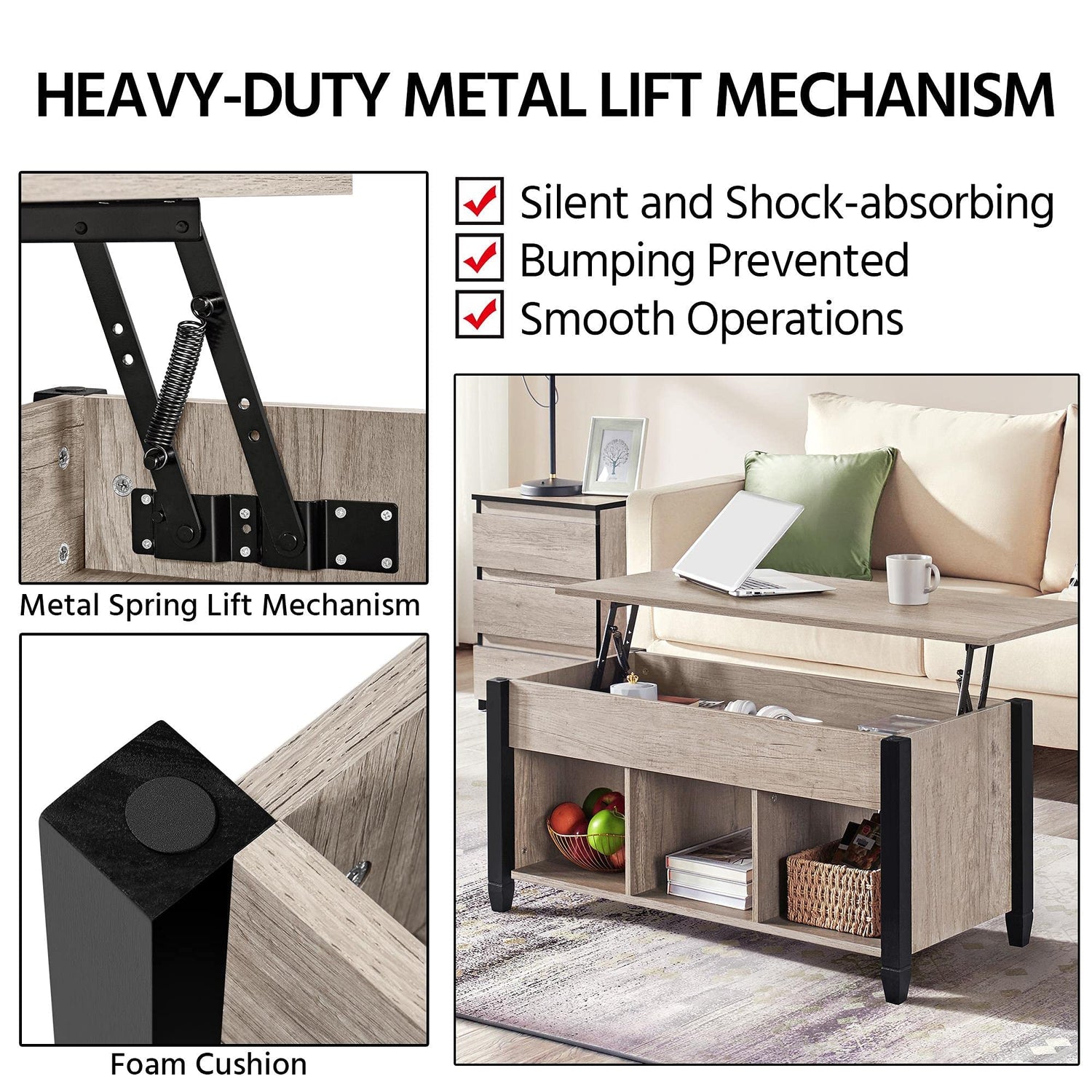 - 【Strong wood construction】Crafted from a blend of solid and manufactured wood with water-resistant veneer, this coffee table boasts good stability and high weight capacity. The solid pine legs and heavy-duty metal mechanism give high strength and robust support for your daily storage needs.