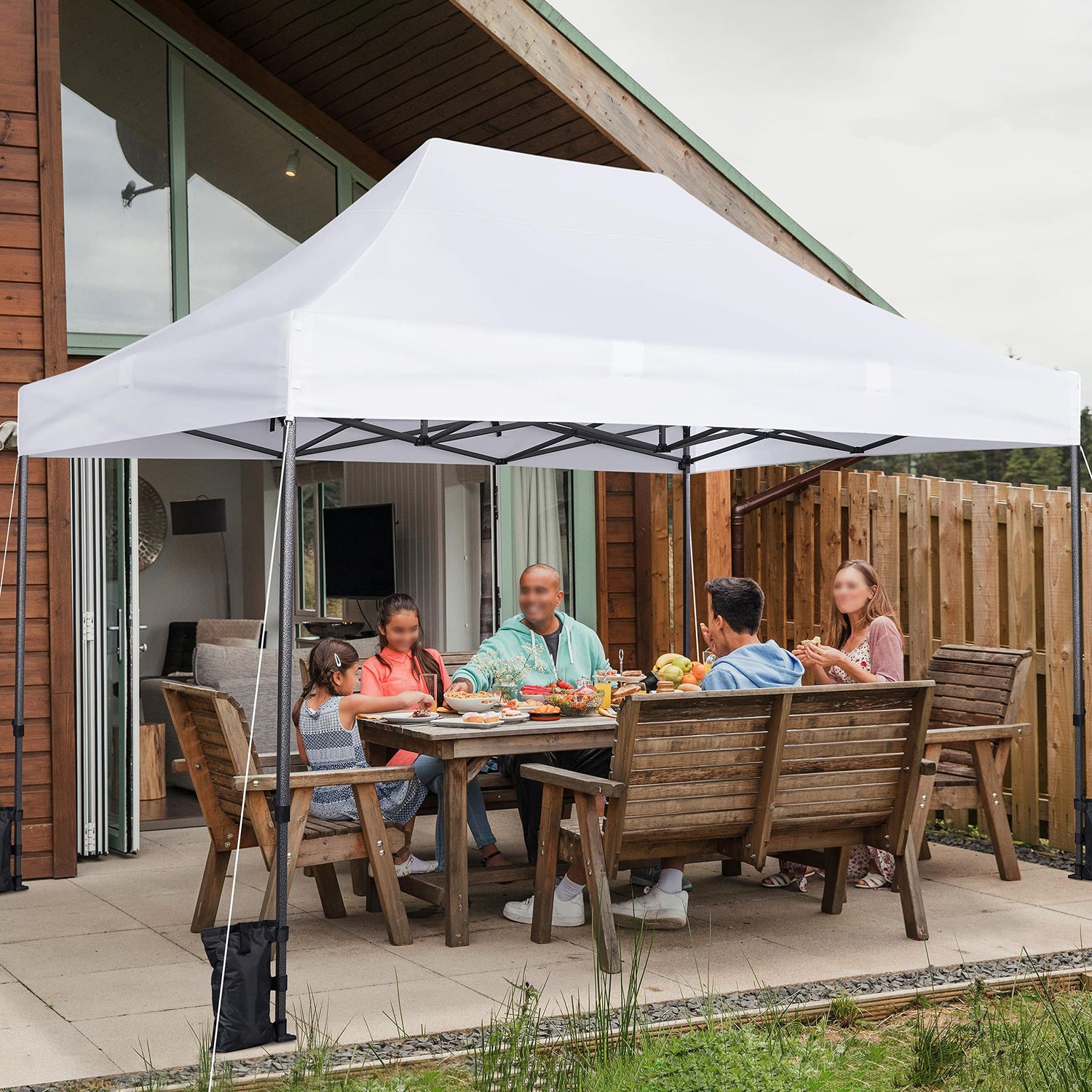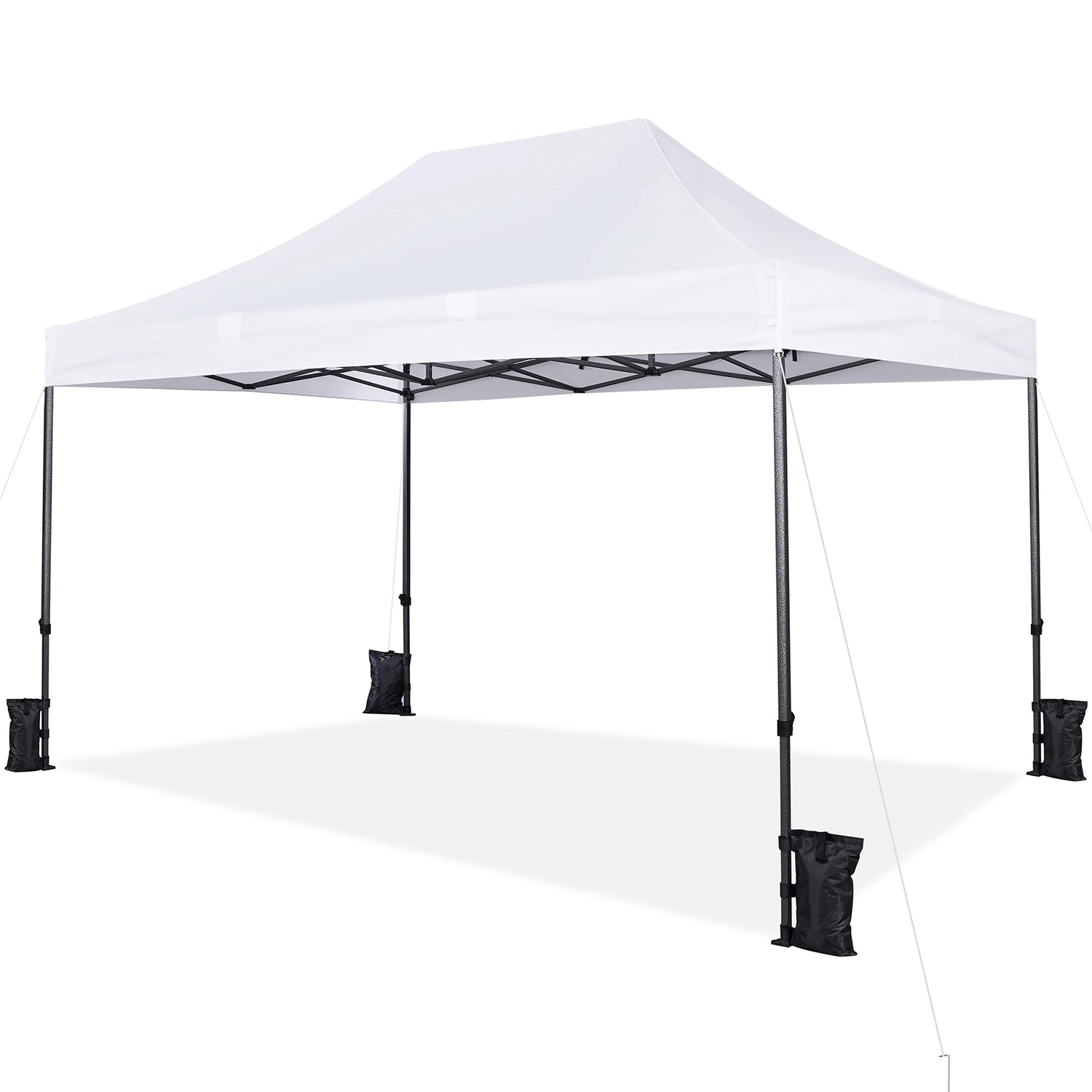 Yaheetech Heavy Duty Pop Up Canopy Tent, 10x15 Commercial Instant Shelter Tent, Outdoor Adjustable Canopy with Wheeled Bag, 4 Sandbags & 8 Stakes, White