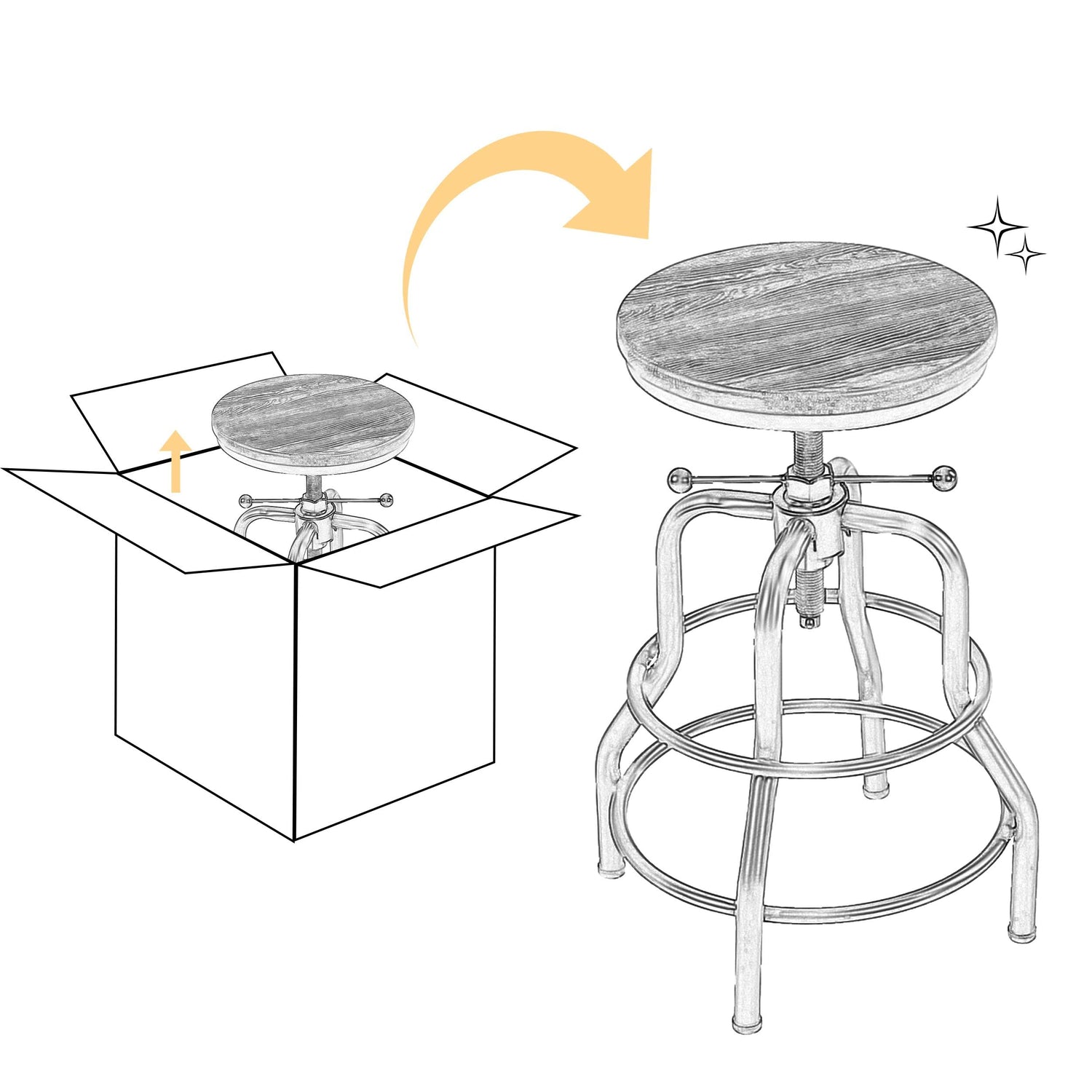 - 【Free & Easy Height Adjustment】Just simple operation to adjust and fix this round bar stool with a lockable rod under the seat. Loosen the rod first, spin the seat by your desired height between 51-68cm/20-27″, and then tighten the lockable rod.
