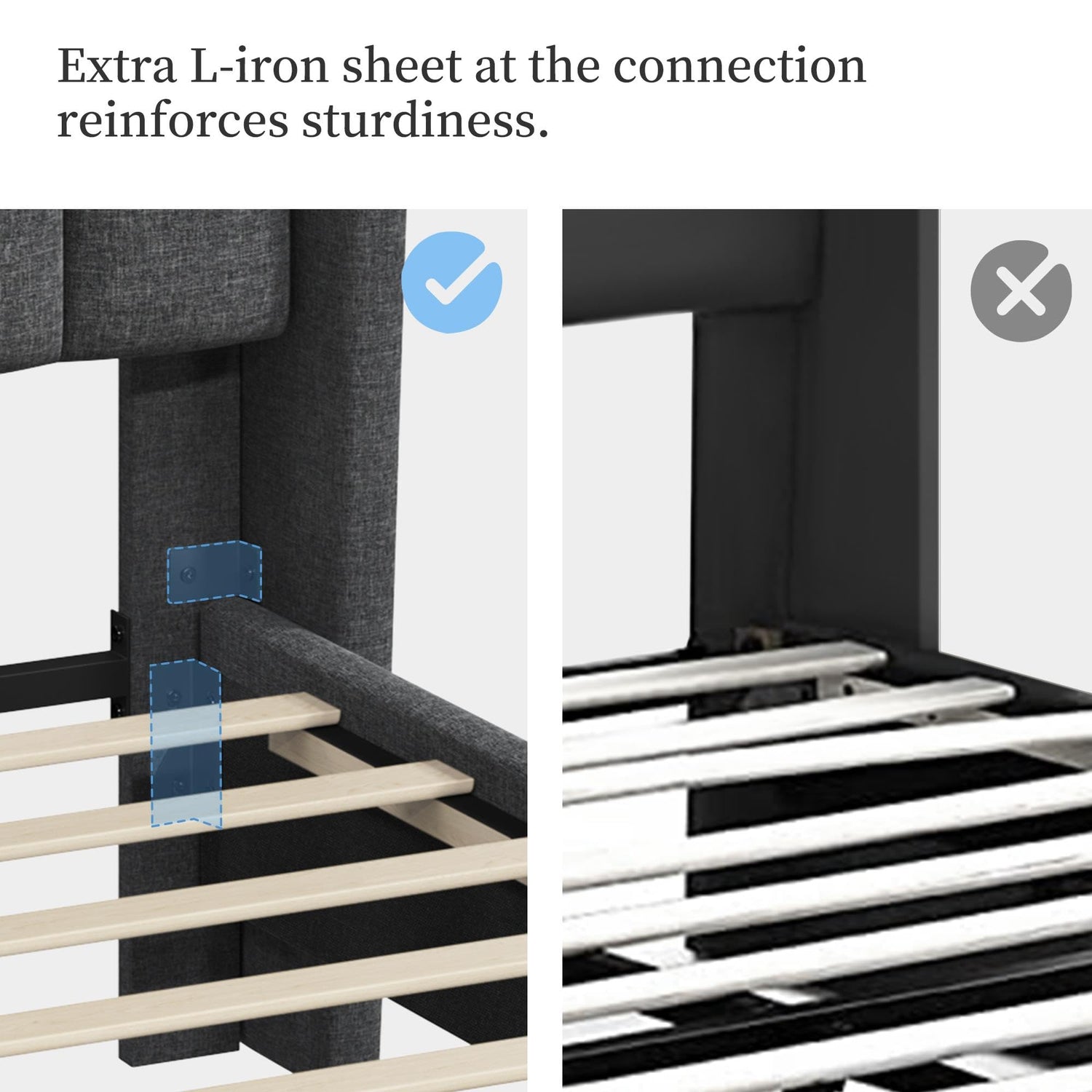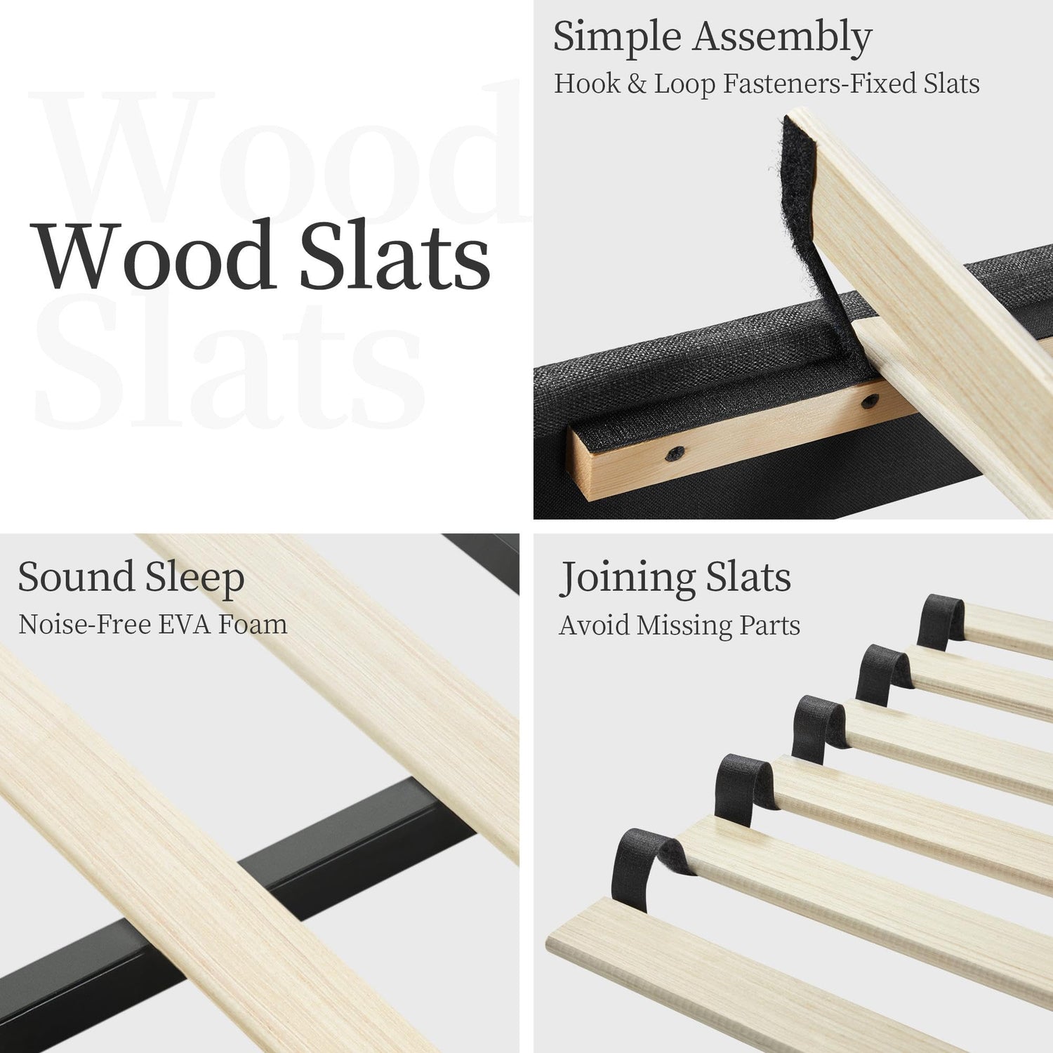 Designed for durability and stability, the bed frame boasts a robust wood-metal construction that supports a maximum weight capacity of 1003 lbs. This ensures that premium comfort and long-lasting quality come together seamlessly. The fabric-upholstered headboard not only enhances the aesthetic appeal of your room but also provides excellent back support and a cozy headrest, creating an inviting sleeping environment.