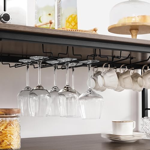 - 【Large-capacity Kitchen Organizer】This movable kitchen island features a 47.5″ L × 24″ W countertop to provide extra elbow room or storage space, while the 2 shelves provide ample room for keeping various everyday kitchen essentials neat and handy. Besides, there are 3 wine glass holders, 3 mug holders, and 8 S-shaped hooks for flexible hanging storage solutions.