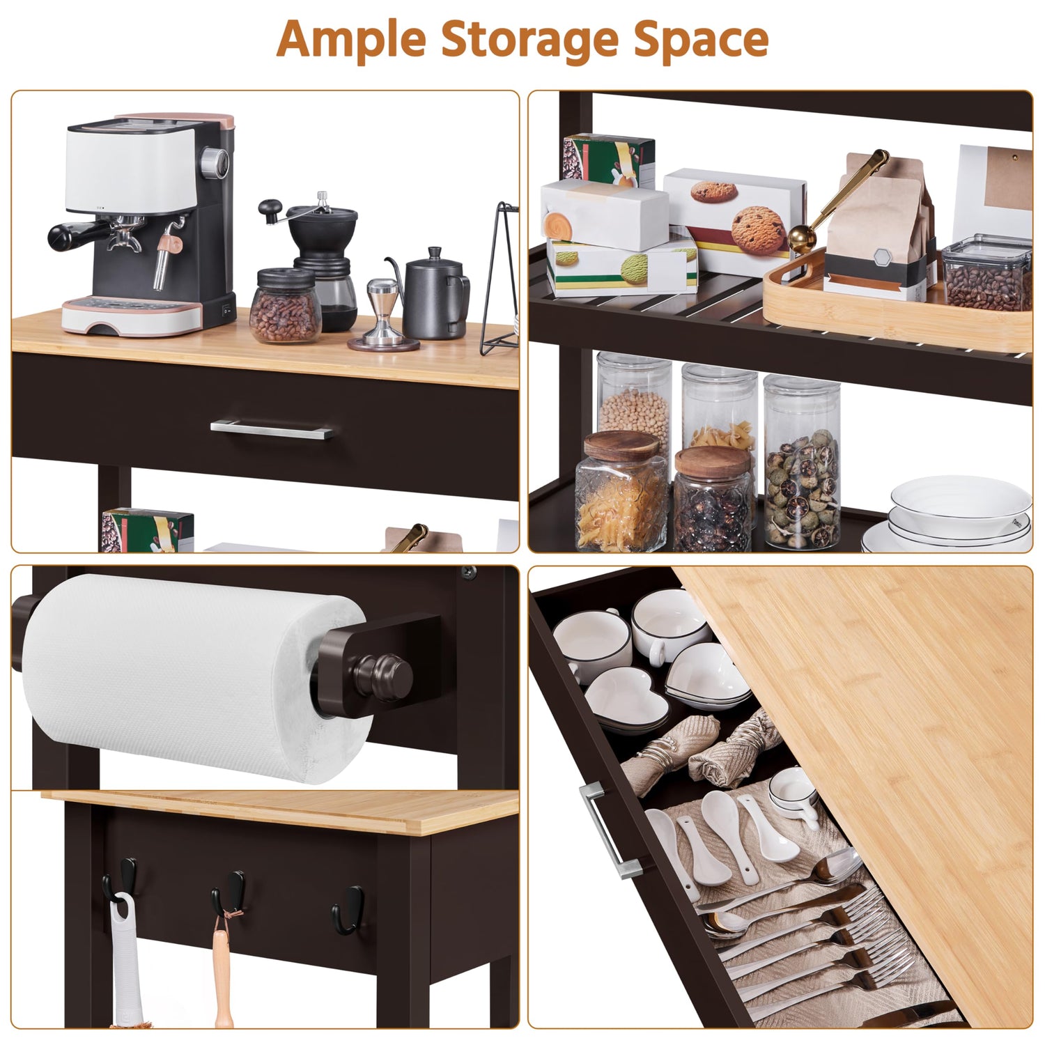 - Smooth Rolling Design: Equipped with four universal casters, this rolling kitchen cart glides smoothly across floors with great maneuverability, while two wheels with locks keep it stable in place