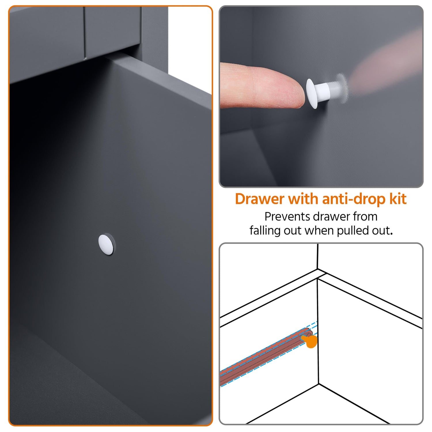 Max. load capacity: countertop: 66lb; open shelf (ea.): 22lb; drawer (ea.): 11lb