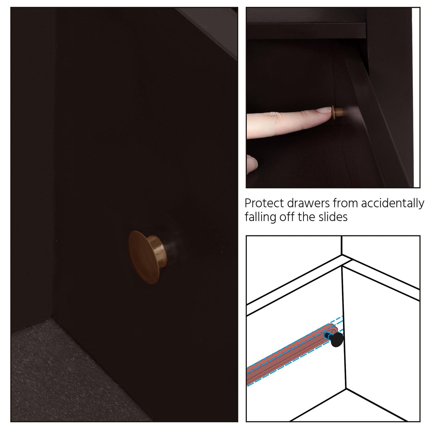 - 【Safe to Use】Come with an anti-tipping kit to improve safety. Equipped with a built-in come-off preventing unit is provided to prevent the drawer from accidentally sliding out. Each door panel of the small drawer has a slight concave opening for easy pulling out and added aesthetic quality.
