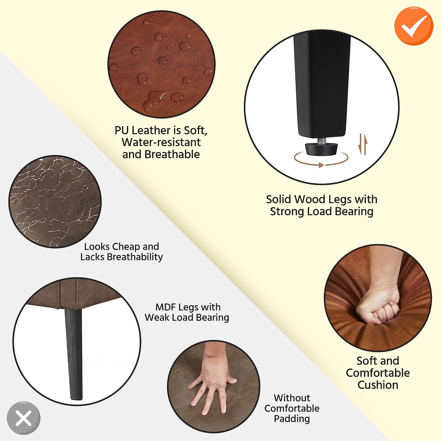 - 【Sturdy & Durable】Made of exquisite material, our upholstered accent chair is firm and durable. The surface is mainly made of PU leather that is water-resistant and breathable. The rubberwood legs, complete with adjustable foot pads, offer great sturdiness and prevent sliding or shaking. It has a weight capacity of up to 136 kg/300 lb.