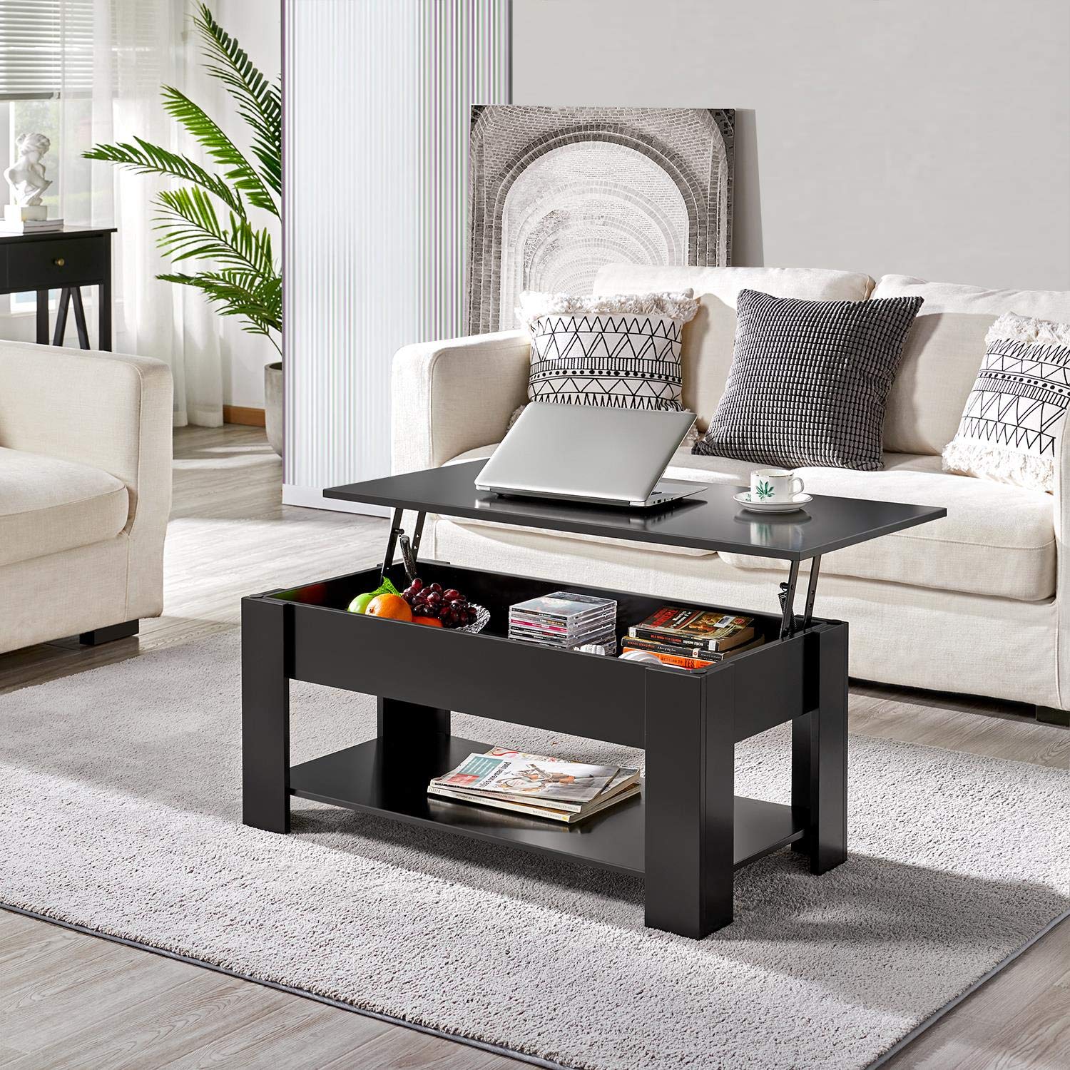 Yaheetech Modern Living Room 3 Pieces Table Sets, Lift Top Coffee Table and End Table Sets for Home and Office, Easy Assembly Accent Furniture with Hidden Compartment and Open Storage Shelf, Black