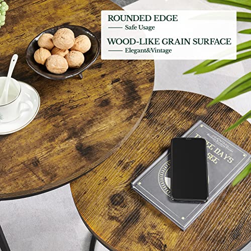 Yaheetech Nesting Coffee Table, Round Coffee Table for Living Room, Nesting Table with Wooden Tabletop and Sturdy Metal Frame, Stacking Living Room Tables Nesting End Table Set of 2, Rustic Brown