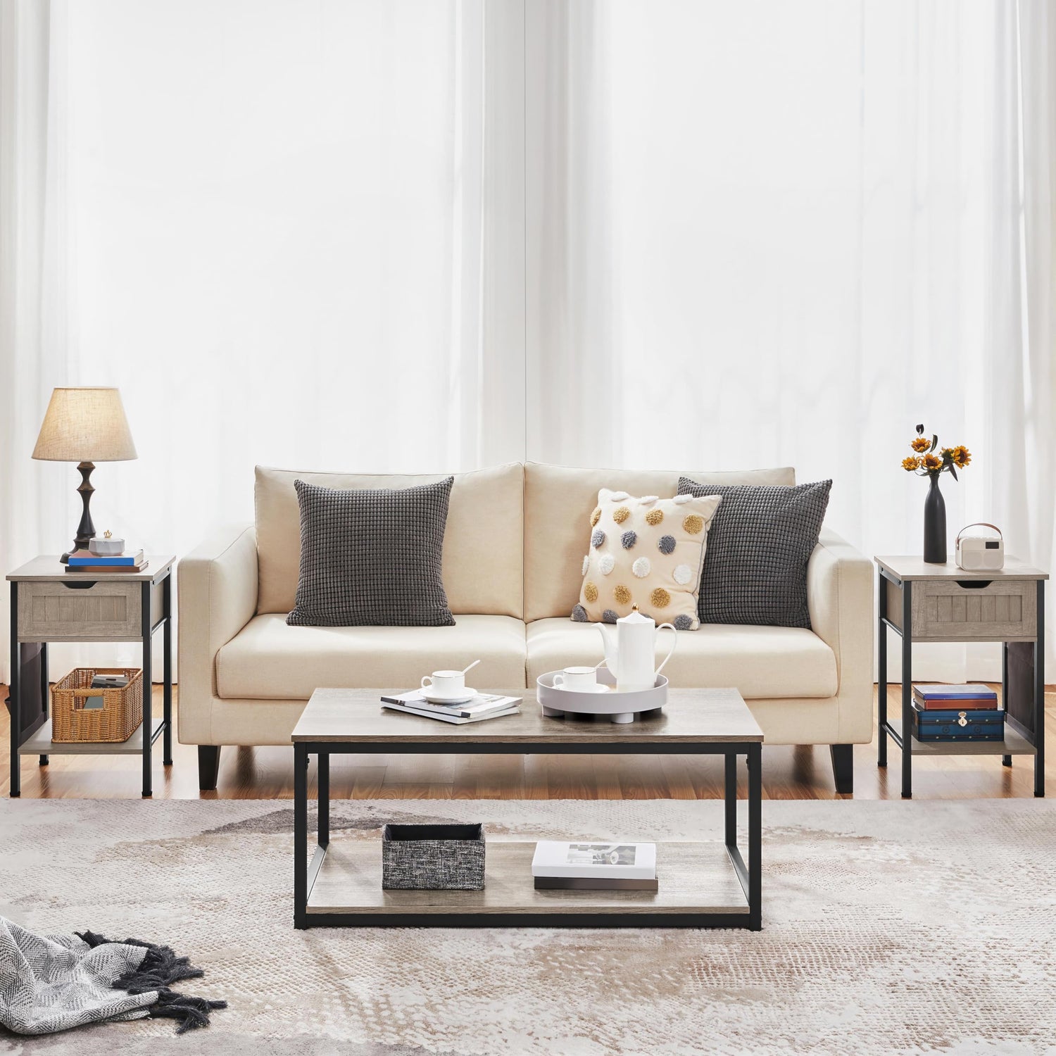 - 【Sturdy】This sofa side table is constructed of CARB P2-compliant MDF boards and strong iron pipe legs, which is capable of loading up to 44 lb for the tabletop and another 22 lb for the drawer and shelf.