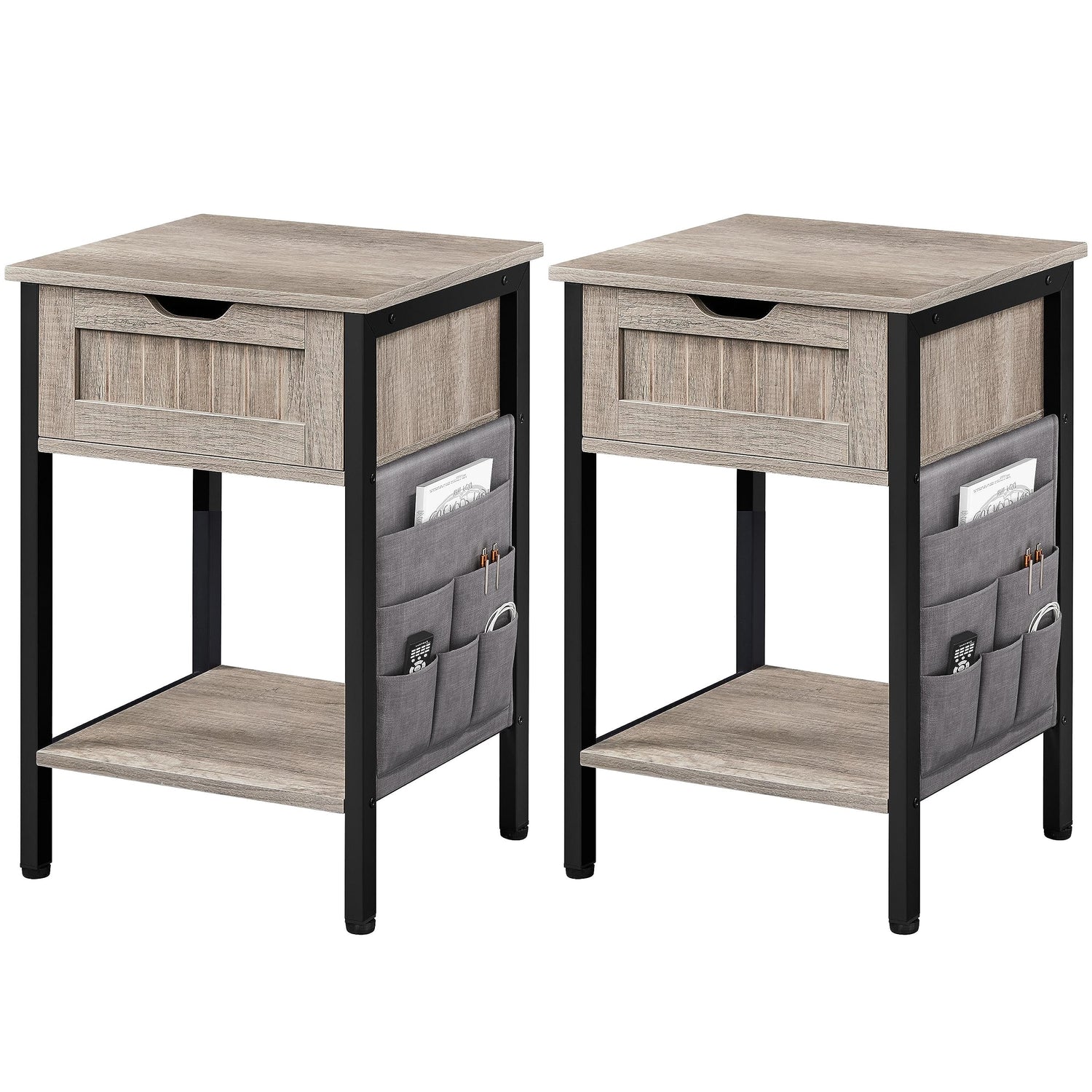 Yaheetech Nightstand Set of 2, Bedside Table with Drawer & Storage Shelf, Wood Side Table Night Stand with Removable Fabric Bag for Bedroom/Living Room, Gray