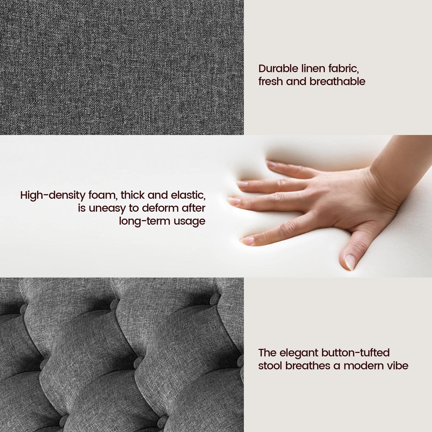 - Taper Legs: Taper legs are adopted, not only to ensure the stability of this Ottoman to serve as a footrest or a cozy seat but also effectively control the overall weight at 36.3 lb to facilitate its movement