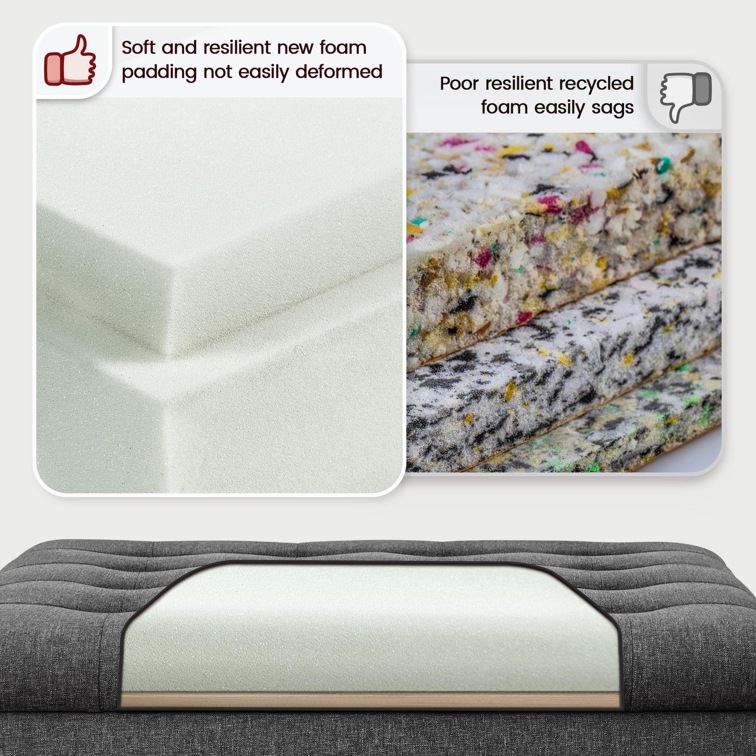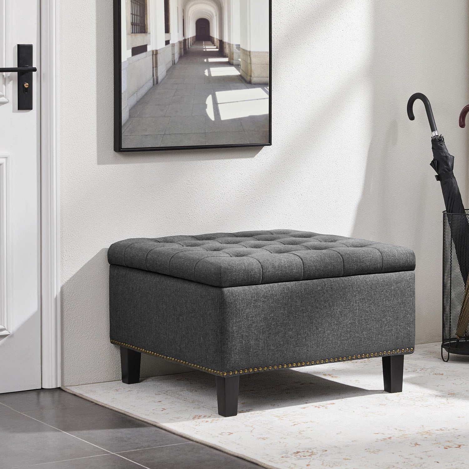 - Soft & Elastic & Breathable: The 2.8″ thick lid of this storage Ottoman, from outside to inside, is sequentially constituted by linen-like fabric, 80g high-density foam, CARB P2 MDF, and non-woven fabric. It is soft, elastic, breathable, and durable, capable of holding up to 299 lb, allowing this storage bench to serve all-purpose