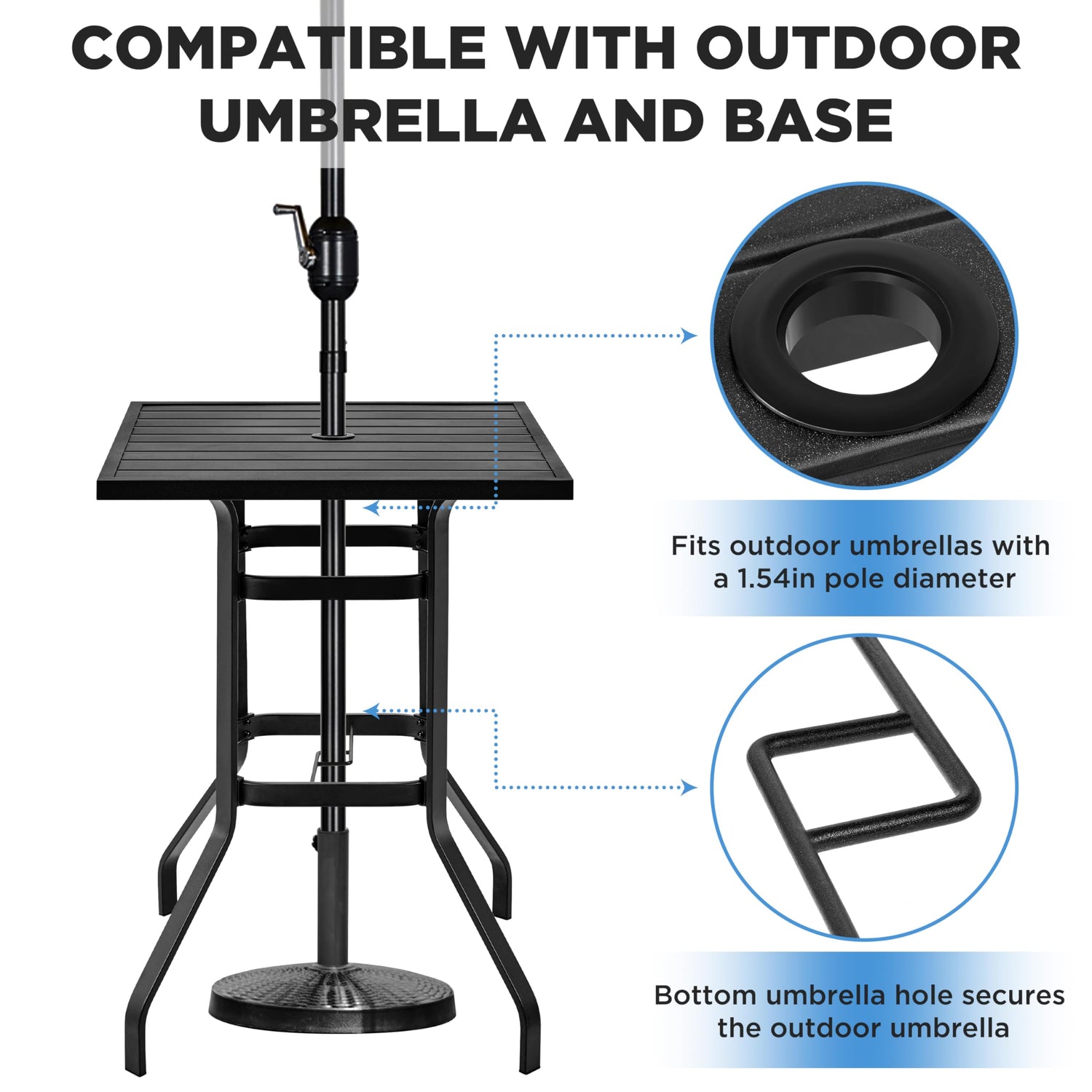 Yaheetech Outdoor Height Bar Table, Square Patio Bistro Table with Umbrella Hole and Slatted Metal Tabletop, Outside Furniture for Garden Lawn Poolside, Black