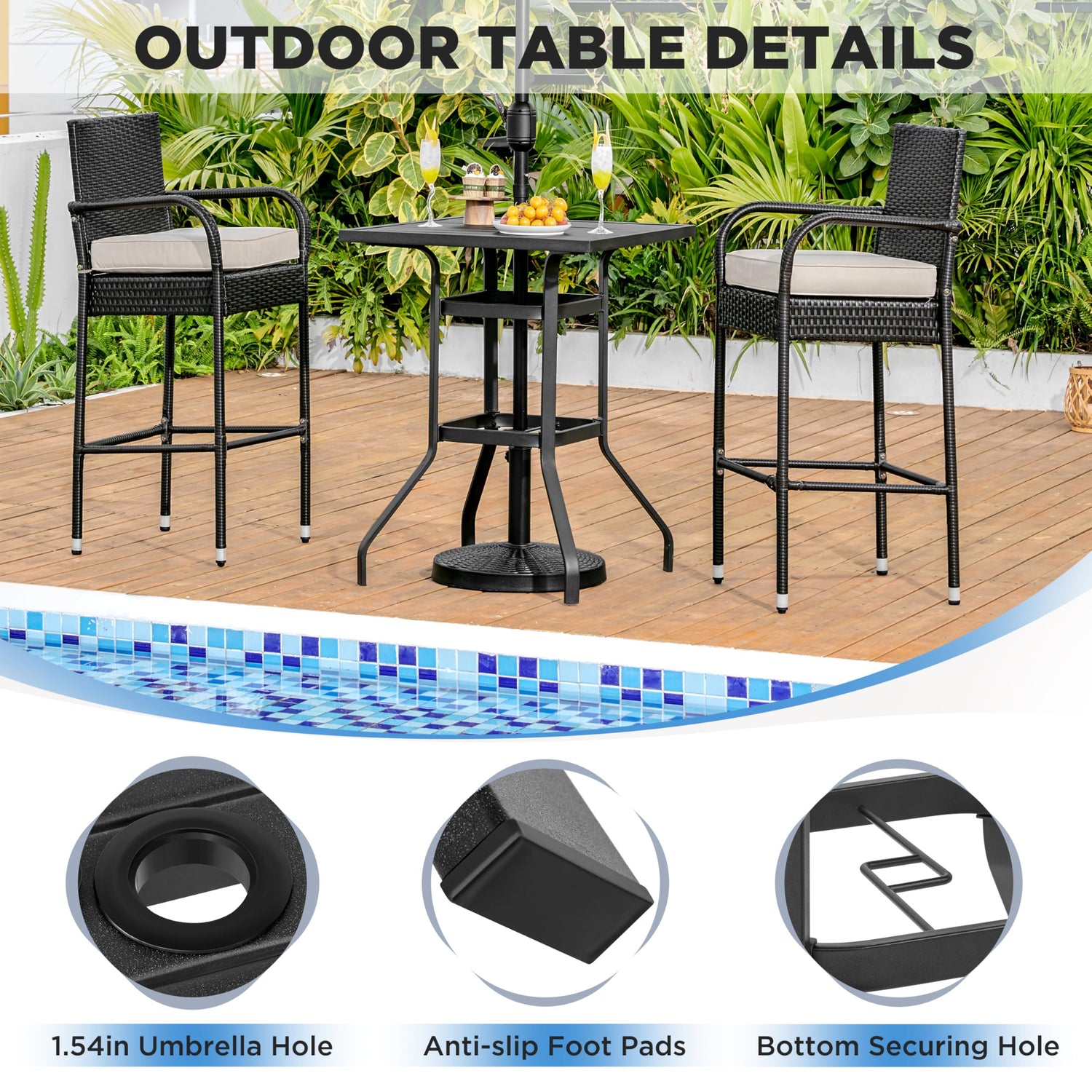 - Stable Metal Construction: Built with a sturdy metal frame, this black bistro table features a powder-coated surface treated with an electrophoretic process for enhanced strength and paint-shedding resistance, ensuring its reliability in all weather conditions